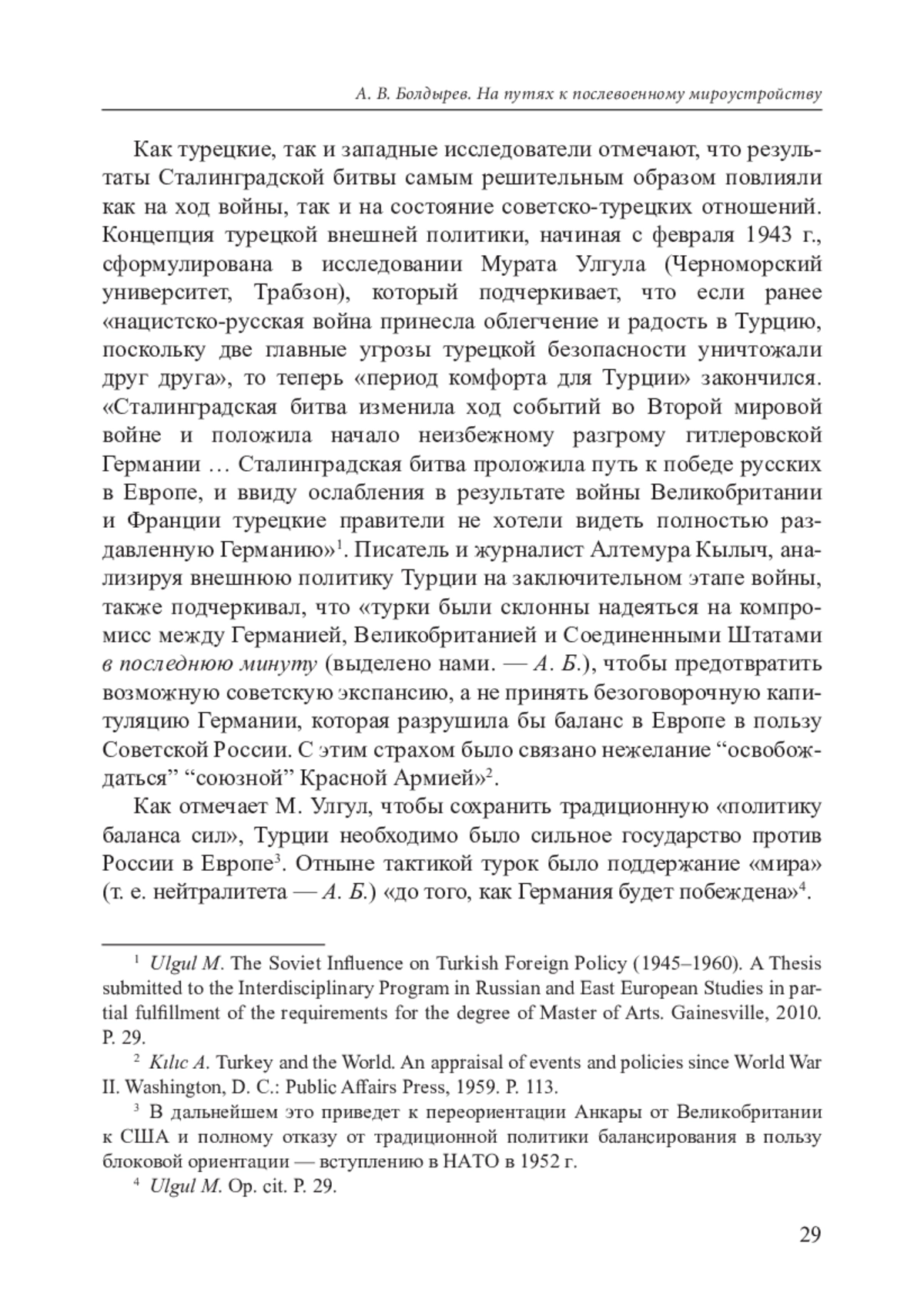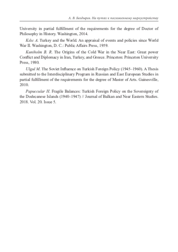 13. Ulgul M. The Soviet Influence on Turkish Foreign Policy (1945-1960). A Thesis submitted to the Interdisciplinary Program in Russian and East European Studies in partial fulfillment of the requirements for the degree of Master of Arts. Gainesville, 2010.