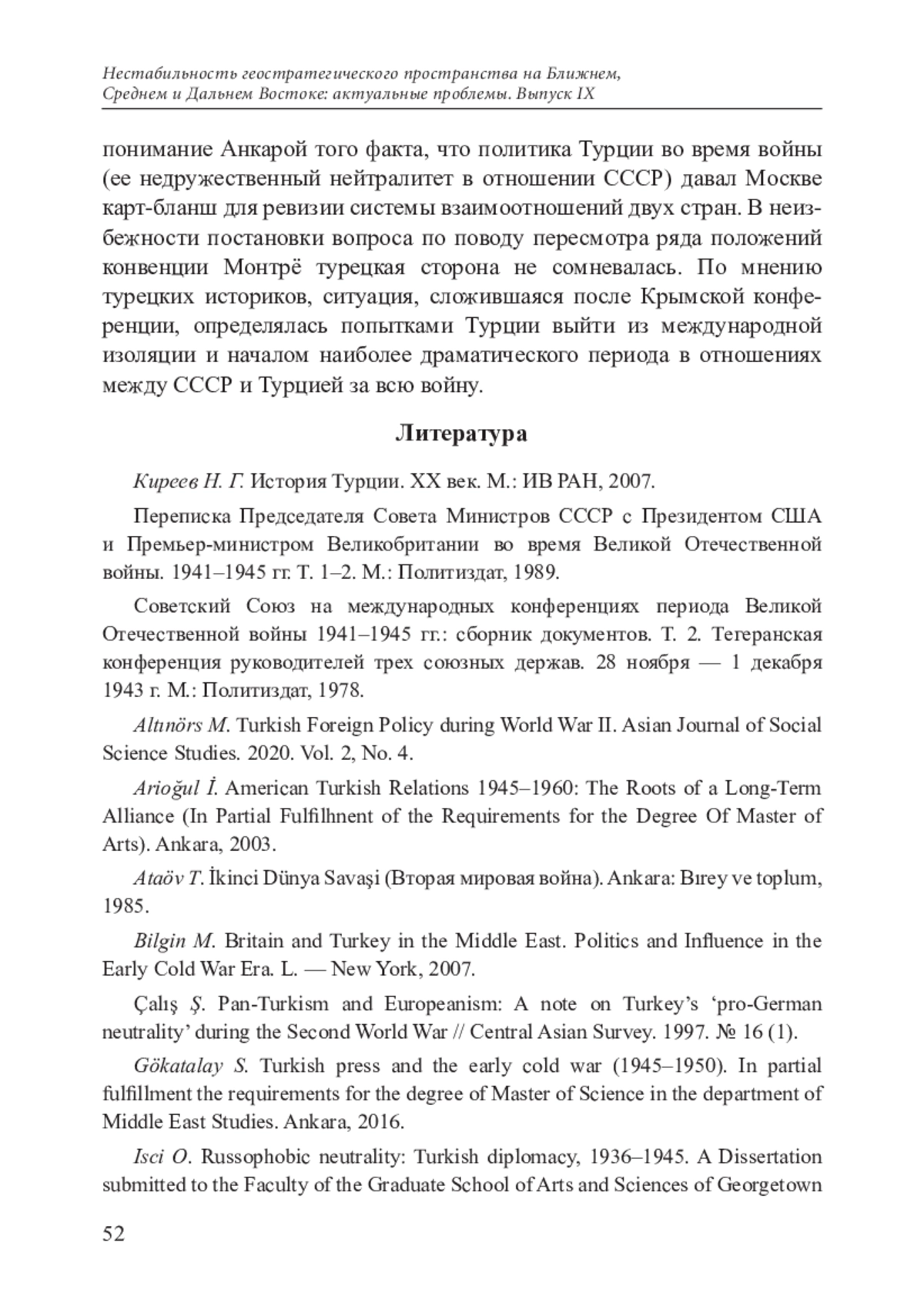 10. Isci O.Russophobic neutrality: Turkish diplomacy, 1936-1945. A Dissertation submitted to the Faculty of the Graduate School of Arts and Sciences of Georgetown University in partial fulfillment of the requirements for the degree of Doctor of Philosophy in History. Washington, 2014.