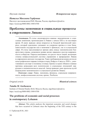 Статья: Проблемы экономики и социальные процессы в современном Ливане (2022)