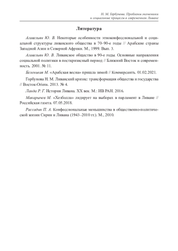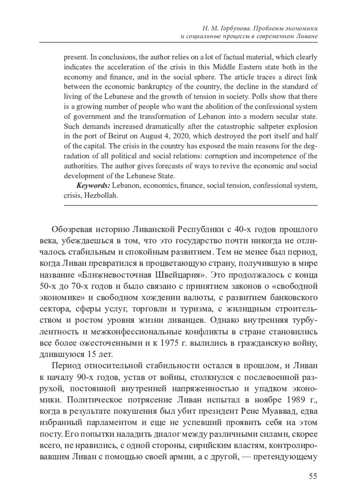 ГОРБУНОВА Н. М. ПРОБЛЕМЫ ЭКОНОМИКИ И СОЦИАЛЬНЫЕ ПРОЦЕССЫ В СОВРЕМЕННОМ ЛИВАНЕ // НЕСТАБИЛЬНОСТЬ ГЕОСТРАТЕГИЧЕСКОГО ПРОСТРАНСТВА НА БЛИЖНЕМ, СРЕДНЕМ И ДАЛЬНЕМ ВОСТОКЕ: АКТУАЛЬНЫЕ ПРОБЛЕМЫ. 2022. № 9