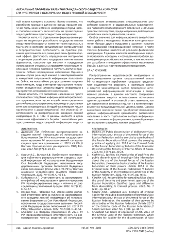 5. Мурадян С.В. Вопросы применения ст. 207.3 УК РФ, предусматривающей ответственность за распространение ложных сведений об использовании Вооруженных Сил Российской Федерации и исполнении государственными органами Российской Федерации своих полномочий // LEGALTECH: научные решения для профессиональной юридической деятельности: сборник докладов IX Московского юридического форума: в 4 ч. XXI Международная научно-практическая конференция. Том Часть 3. Москва, 2022. С. 175-179. EDN: DCCBCA