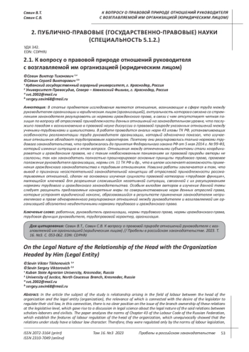 Zaitseva O. B. The head of the organization as a subject of labor law. M., 2013. pp. 36-39.