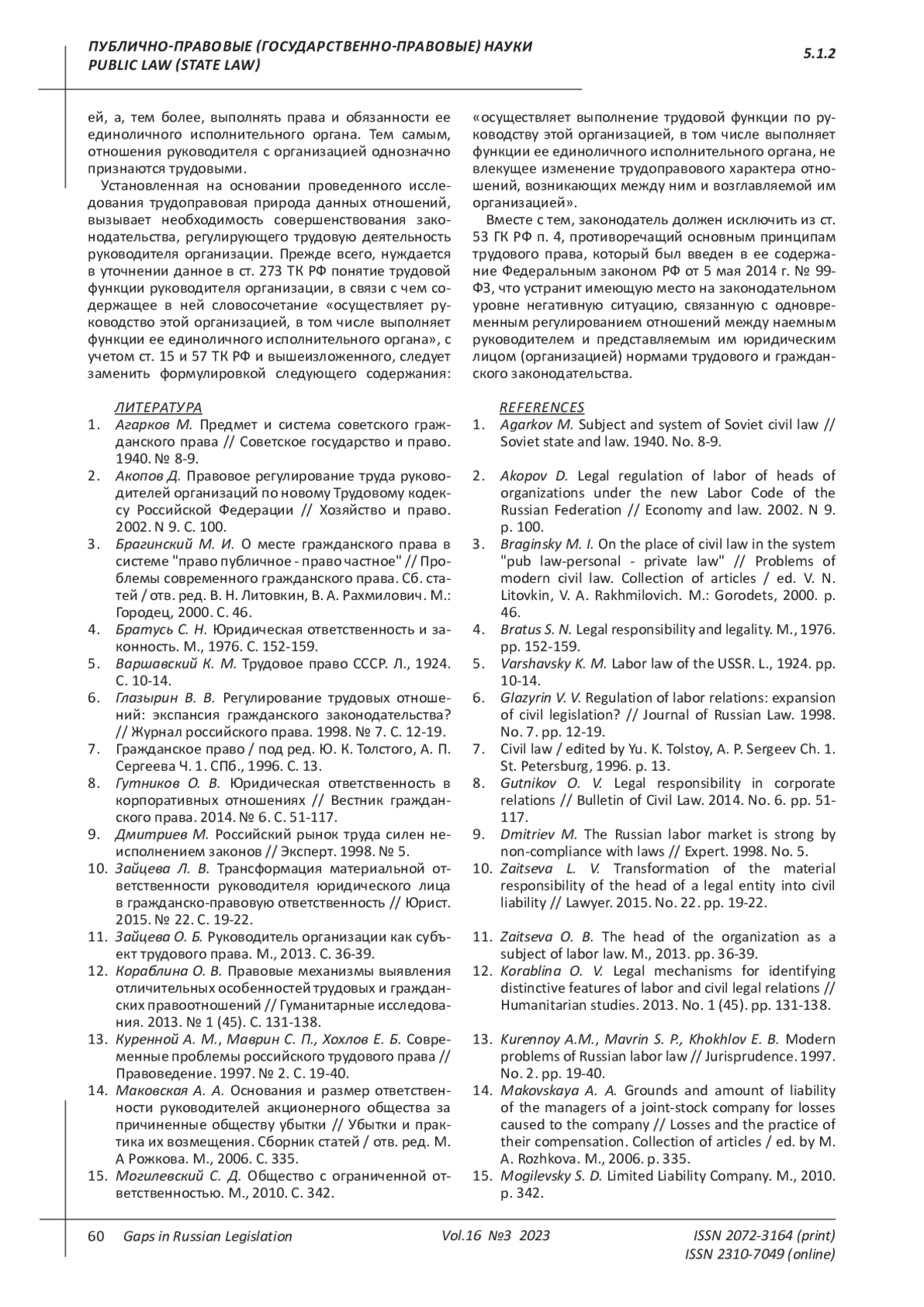 Pashin V. M. The legal status of the sole executive body of a business company: an imaginary conflict of civil and labor law // Legislation. 2006. No.5. p. 33-37. EDN: HTGMXR
