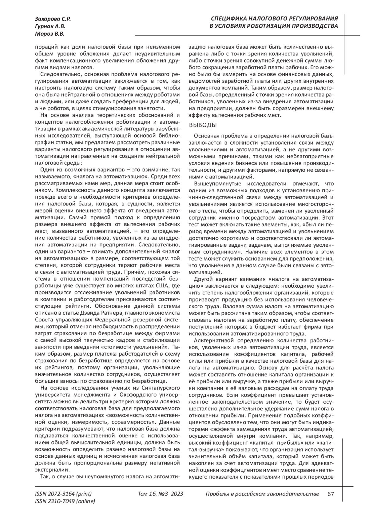 5. Abbott R. and Bogenschneider B. Should Robots Pay Taxes? Tax Policy in the Age of Automation // Harvard Law & Policy Review - 2018 - pp. 146-175.