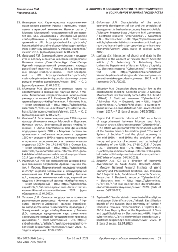 Golamreza A.N. Characteristics of the socio-economic development of Iran and the principles of management in the Iranian economy. Research Article. / Moscow: Moscow State University. M.V. Lomonosov / Electronic resource “CyberLeninka”. / Golamreza A.N. - Electronic text - URL: https://cyberleninka.ru/article/n/harakteristiki-sotsialno-ekonomicheskogo-razvitiya-irana-i-printsipy-upravleniya-v-iranskoy-ekonomike/viewer: 2018. (Date of access: 12.04. 2022).