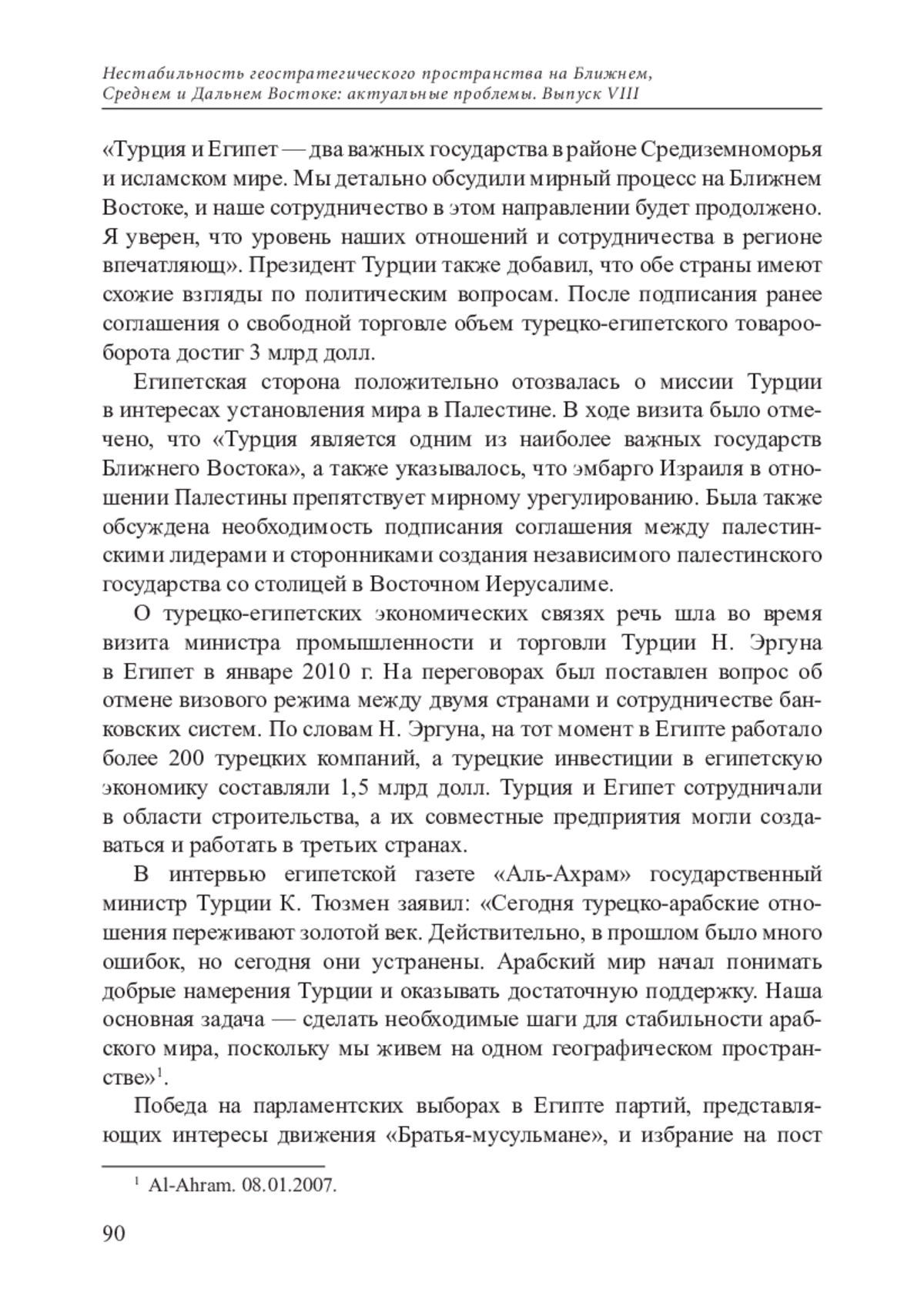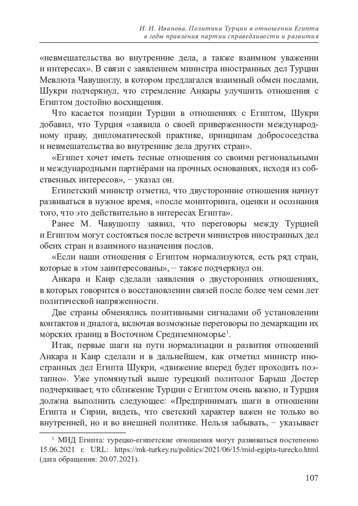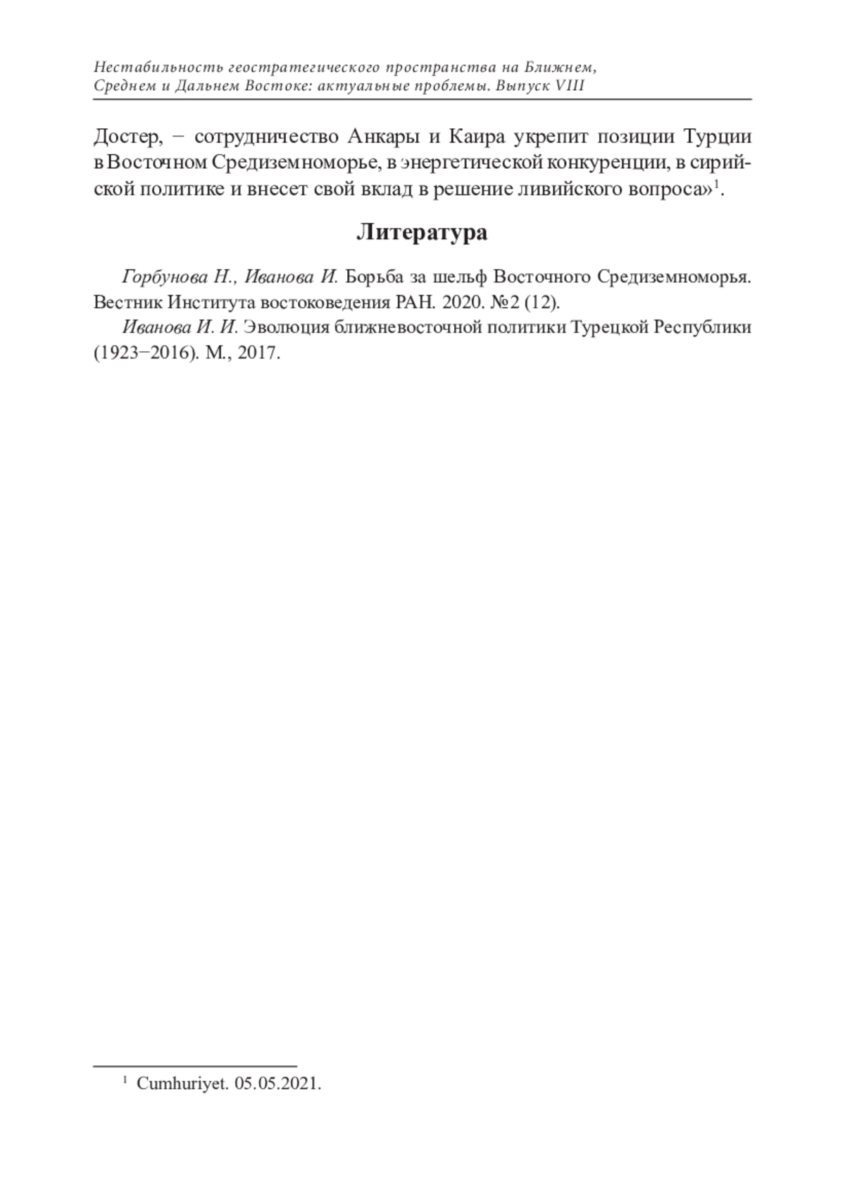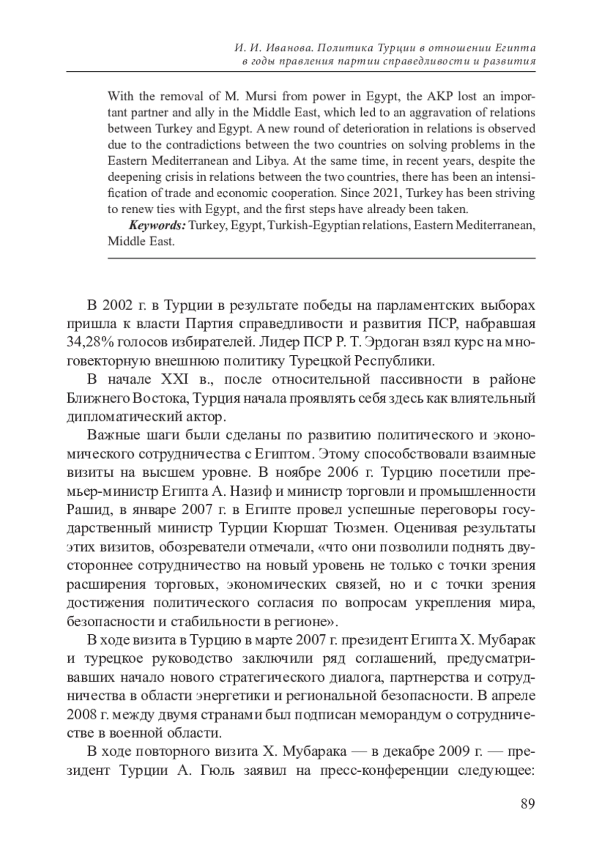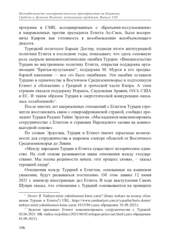 ИВАНОВА И. И. ПОЛИТИКА ТУРЦИИ В ОТНОШЕНИИ ЕГИПТА В ГОДЫ ПРАВЛЕНИЯ ПАРТИИ СПРАВЕДЛИВОСТИ И РАЗВИТИЯ // НЕСТАБИЛЬНОСТЬ ГЕОСТРАТЕГИЧЕСКОГО ПРОСТРАНСТВА НА БЛИЖНЕМ, СРЕДНЕМ И ДАЛЬНЕМ ВОСТОКЕ: АКТУАЛЬНЫЕ ПРОБЛЕМЫ. 2022. № 8