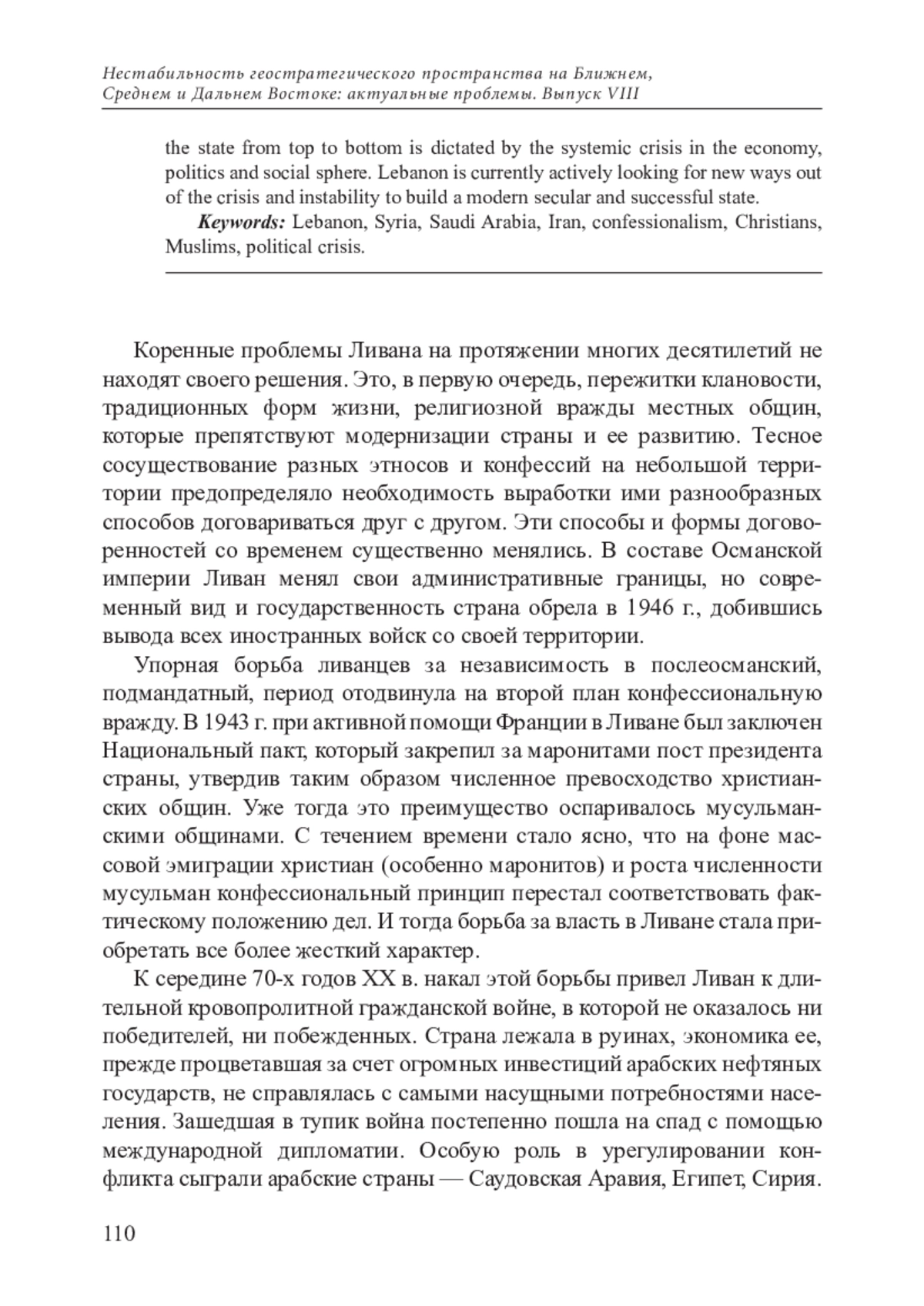 1. Горбунова Н. М. Перманентный кризис в Ливане: роль этноконфессионального фактора // Нации и национализм на мусульманском Востоке. М.: ИВ РАН, 2015. EDN: VDUVYP