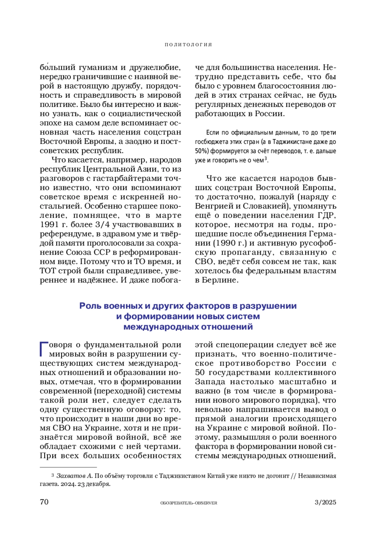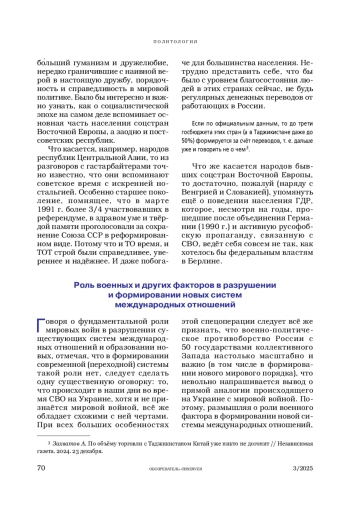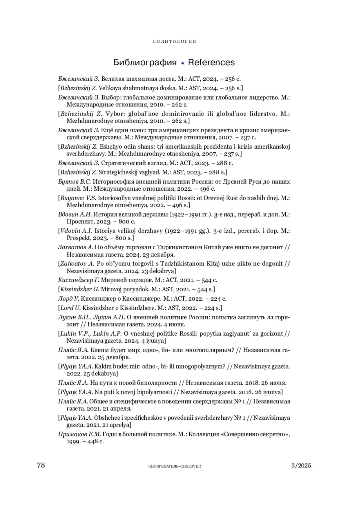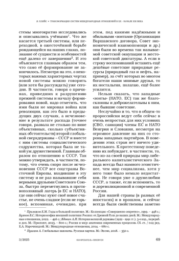 ПЛЯЙС Я. А. ТРАНСФОРМАЦИЯ СИСТЕМ МЕЖДУНАРОДНЫХ ОТНОШЕНИЙ В XX – НАЧАЛЕ XXI ВЕКА // ОБОЗРЕВАТЕЛЬ. 2025. № 3