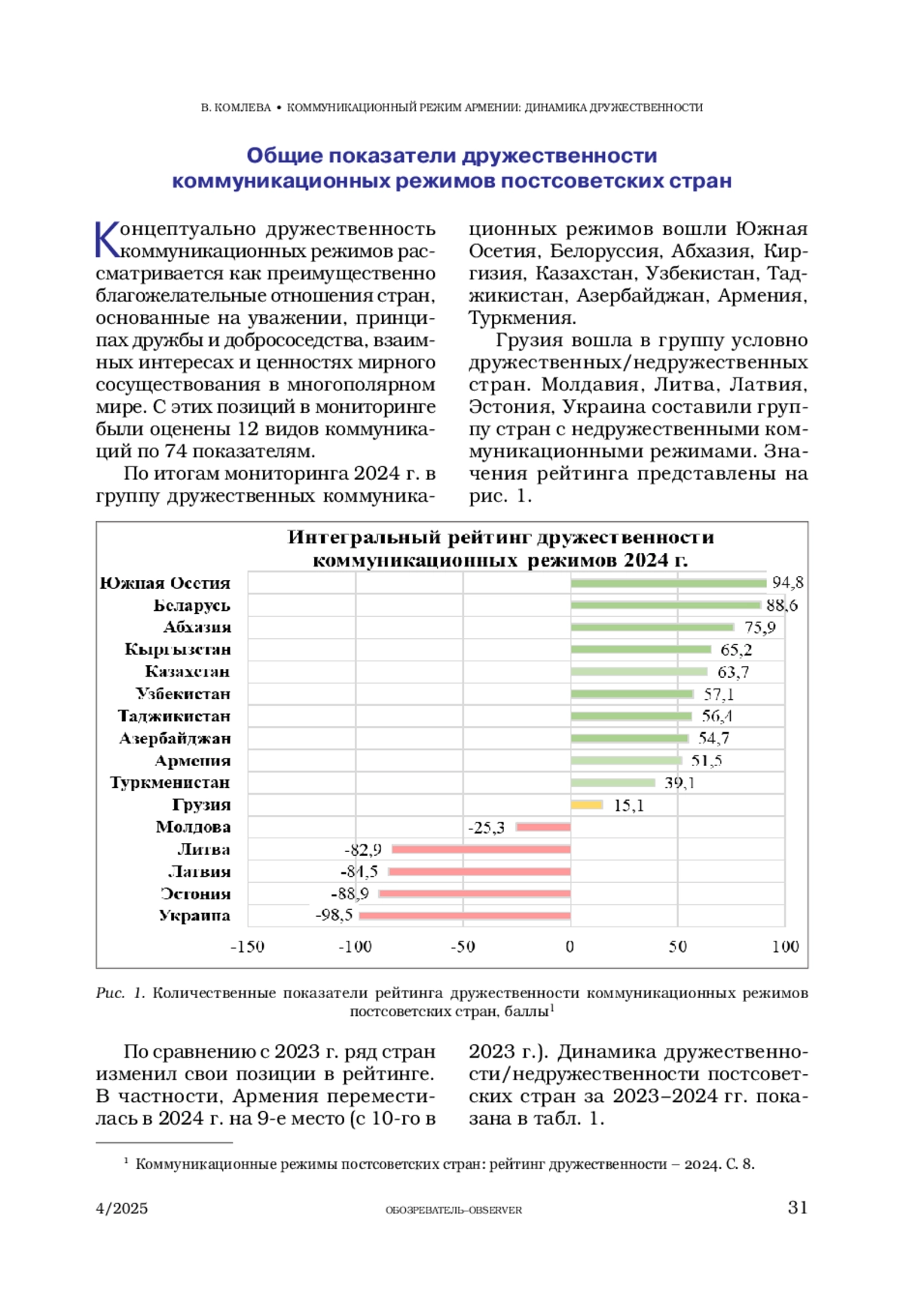 4. Коммуникационные режимы постсоветских стран: рейтинг дружественности - 2024. Научный доклад по результатам мониторинга коммуникационных режимов постсоветских стран / под науч. ред. В.В. Комлевой. М.: Национальный исследовательский институт развития коммуникаций, 2025. - 360 с.