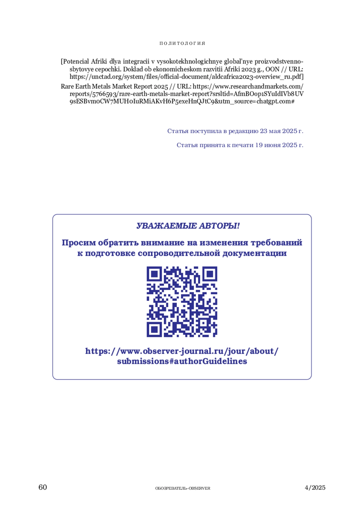 4. Потенциал Африки для интеграции в высокотехнологичные глобальные производственно-сбытовые цепочки. Доклад об экономическом развитии Африки 2023 г., ООН // URL: https://unctad.org/system/files/official-document/aldcafrica2023-overview_ru.pdf