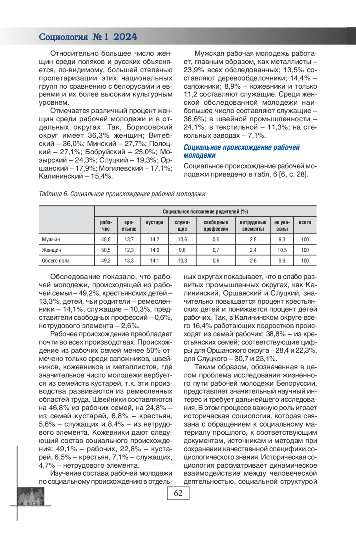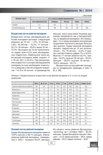 В изучении жизненного пути рабочей молодежи в 1920-е годы важную роль играет историческая социология, которая связана с обращением к социальному материалу прошлого, к соответствующим документам, источникам и методам при сохранении качественной специфики социологического знания. В статье представлены результаты ретроспективного анализа численности, национального, возрастного, полового и профессионального состава рабочей молодежи Советской Белоруссии. 1920-е годы представляют особый интерес, потому что сам по себе это один из наиболее сложных и противоречивых периодов нашей истории. Он связан с глубокими социальными, политическими, экономическими и культурными преобразованиями в обществе.