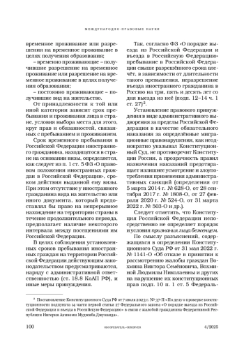 В работе приведены разъяснения Конституционного Суда России по основным правовым актам в сфере миграции и статуса лиц, находящихся в России, доктринальные постулаты в сравнительном анализе зарубежного опыта, отражены новационные изменения законодательства, данные статистики правонарушаемости в сфере миграции.