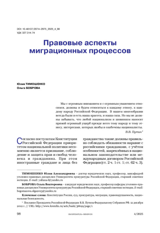 4. Телегина Е.Г., Назаренко Е.В. Криминологическая характеристика миграционной преступности и её предупреждение // Вестник Нижегородского государственного университета им. Р.И. Лобачевского. 2020. № 2. С. 193-199.