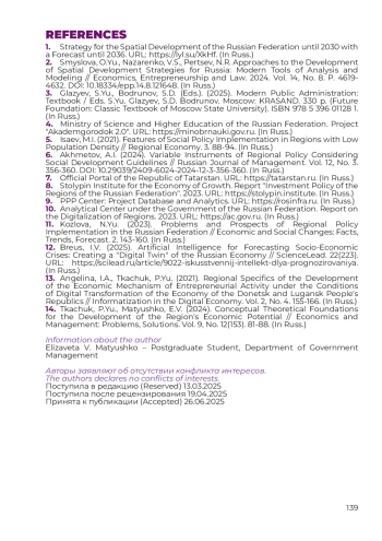 6. Ахметов А. И. Вариативные инструменты региональной политики с учётом социальных ориентиров развития // Russian Journal of Management. 2024. Т. 12, № 3. С. 356-360. DOI: 10.29039/2409-6024-2024-12-3-356-360
