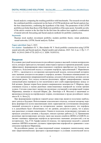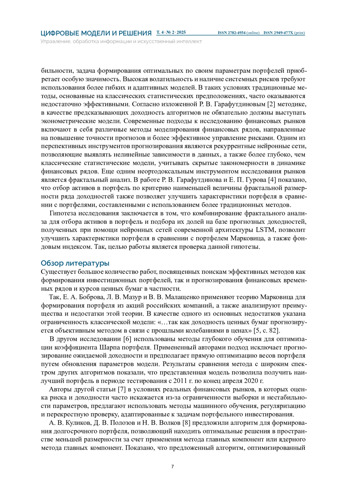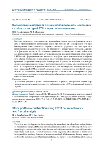 Статья: ФОРМИРОВАНИЕ ПОРТФЕЛЯ АКЦИЙ С ИСПОЛЬЗОВАНИЕМ НЕЙРОННЫХ СЕТЕЙ АРХИТЕКТУРЫ LSTM И ФРАКТАЛЬНОГО АНАЛИЗА (2025)