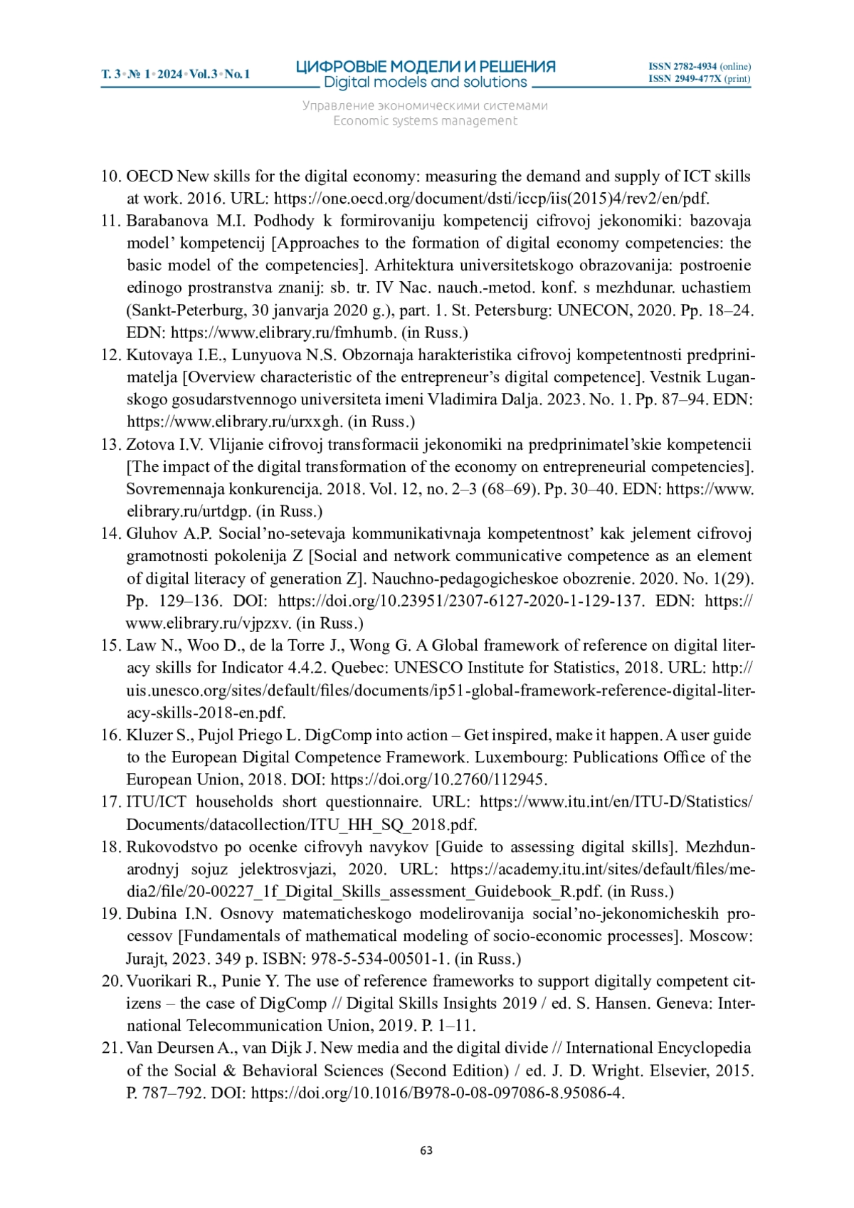 12. Кутовая И.Э., Лунева Н.С. Обзорная характеристика цифровой компетентности предпринимателя // Вестник Луганского государственного университета имени Владимира Даля. 2023. № 1. С. 87-94. EDN: URXXGH