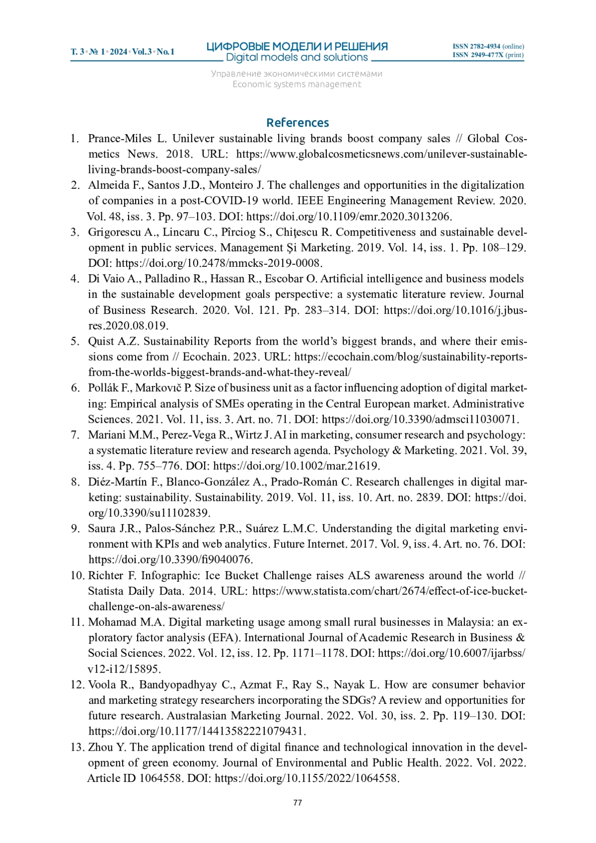8. Diéz-Martín F., Blanco-González A., Prado-Román C. Research challenges in digital marketing: sustainability. Sustainability. 2019. Vol. 11, iss. 10. Art. no. 2839. DOI: 10.3390/su11102839