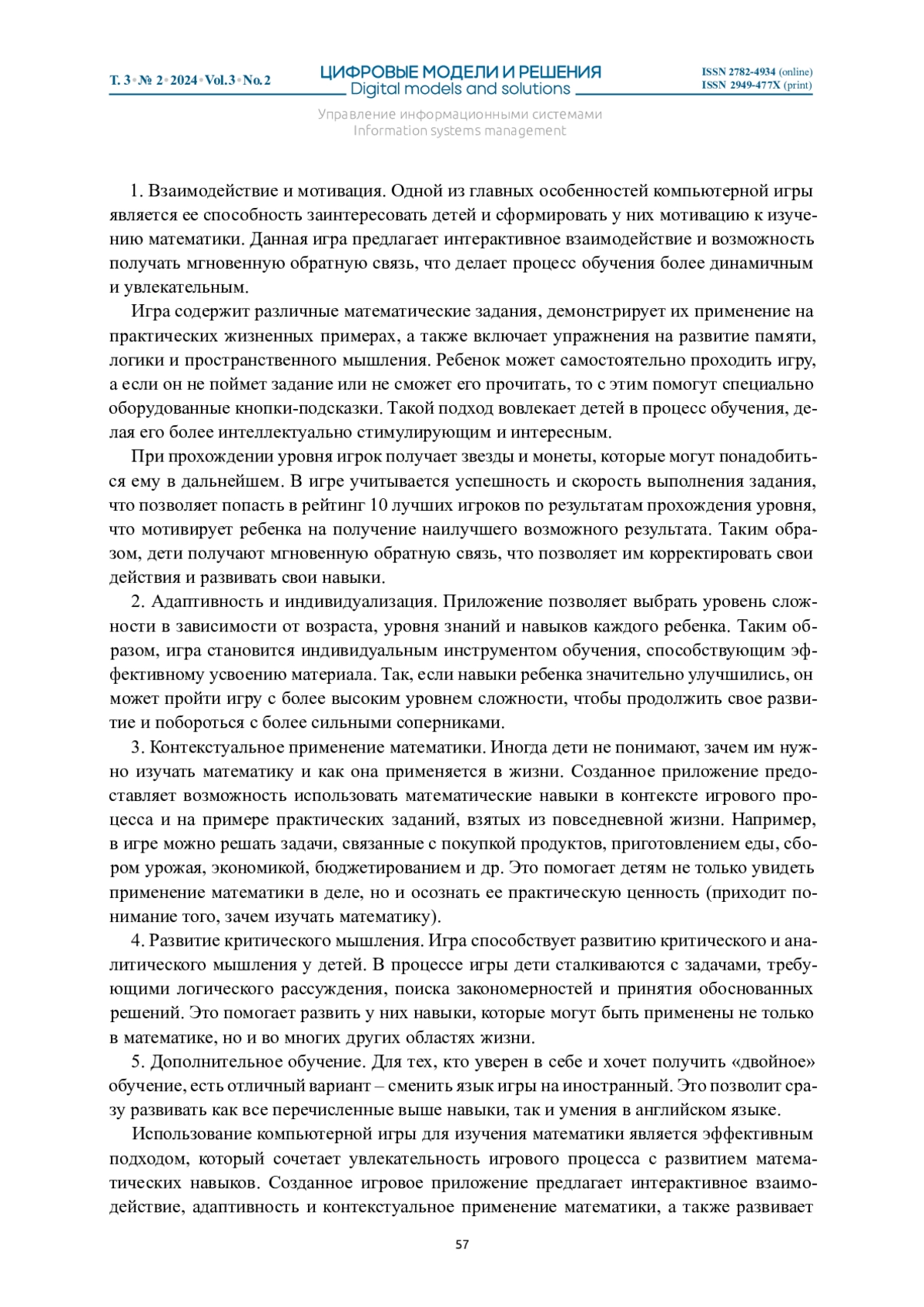 НЕТРЕБИНА Н. А., ТОРЯННИКОВ Д. В., ПОЛУБОЯРОВА Н. М. РАЗРАБОТКА ПРИЛОЖЕНИЯ ДЛЯ ФОРМИРОВАНИЯ МАТЕМАТИЧЕСКИХ СПОСОБНОСТЕЙ И ЭКОНОМИЧЕСКОЙ СМЕКАЛКИ // ЦИФРОВЫЕ МОДЕЛИ И РЕШЕНИЯ. 2024. Т. 3 № 2