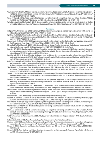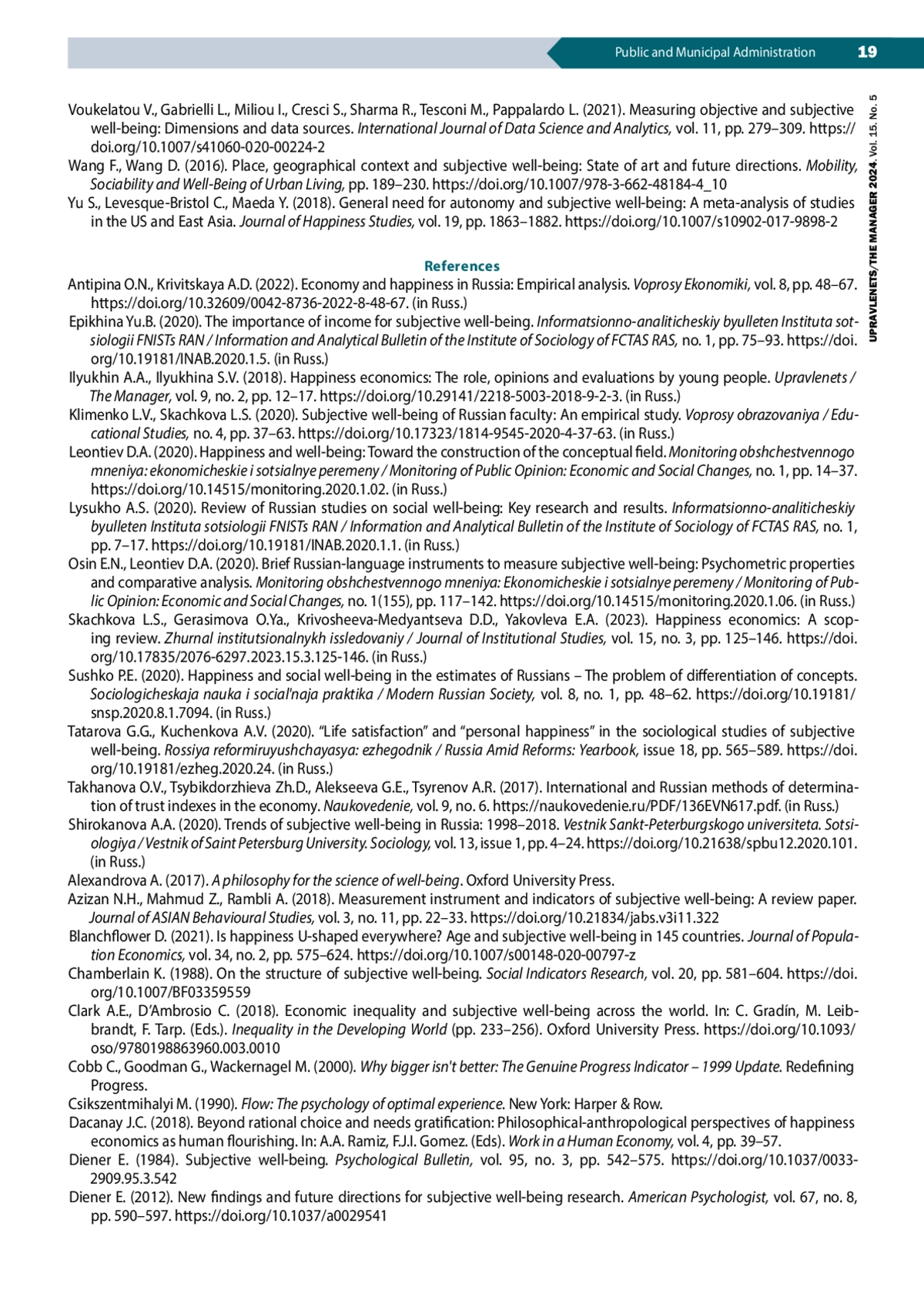 12. Широканова А.А. (2020). Тренды субъективного благополучия в России: 1998-2018 // Вестник Санкт-Петербургского университета. Социология. Т. 13, вып. 1. С. 4-24. DOI: 10.21638/spbu12.2020.101 EDN: JXMNDE