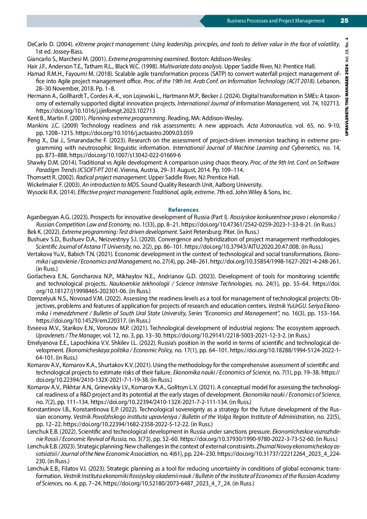 3. Бушуев С.Д., Бушуев Д.А., Неизвестный С.И. (2020). Конвергенция и гибридизация методологий управления проектами // Scientific Journal of Astana IT University. № 2 (2). С. 86-101. DOI: 10.37943/AITU.2020.20.47.008 EDN: JWJZVZ