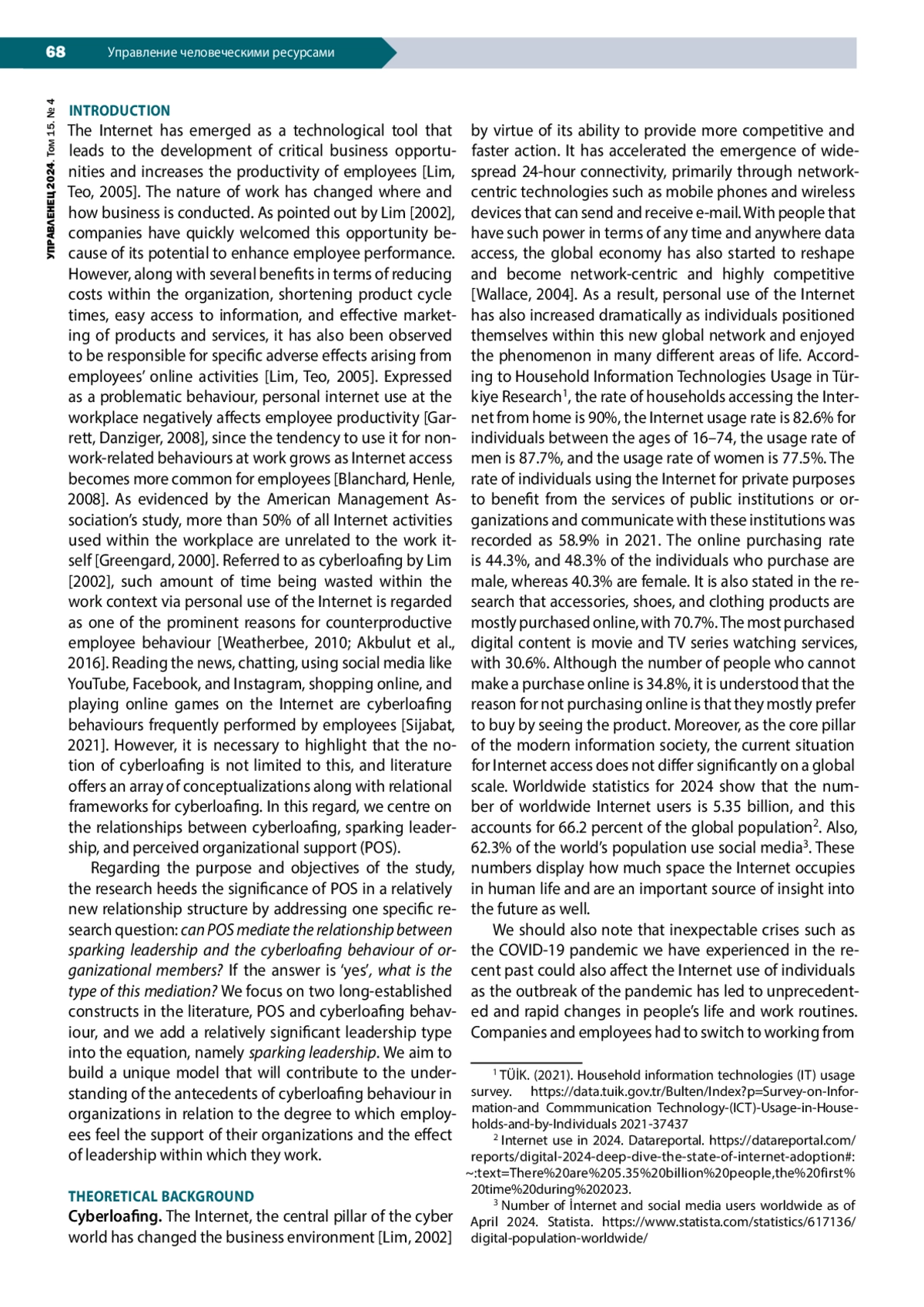 36. Lim V.K. (2002). The it way of loafing on the job: Cyberloafing, neutralizing and organizational justice. Journal of Organizational Behavior, vol. 23, no. 5, pp. 675-694. DOI: 10.1002/job.161 EDN: DVUCUL