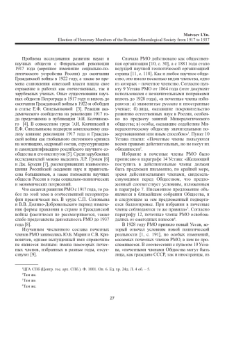 Статья: ИЗБРАНИЕ ПОЧЕТНЫХ ЧЛЕНОВ РОССИЙСКОГО МИНЕРАЛОГИЧЕСКОГО ОБЩЕСТВА С 1917 ПО 1937 ГОД (2025)