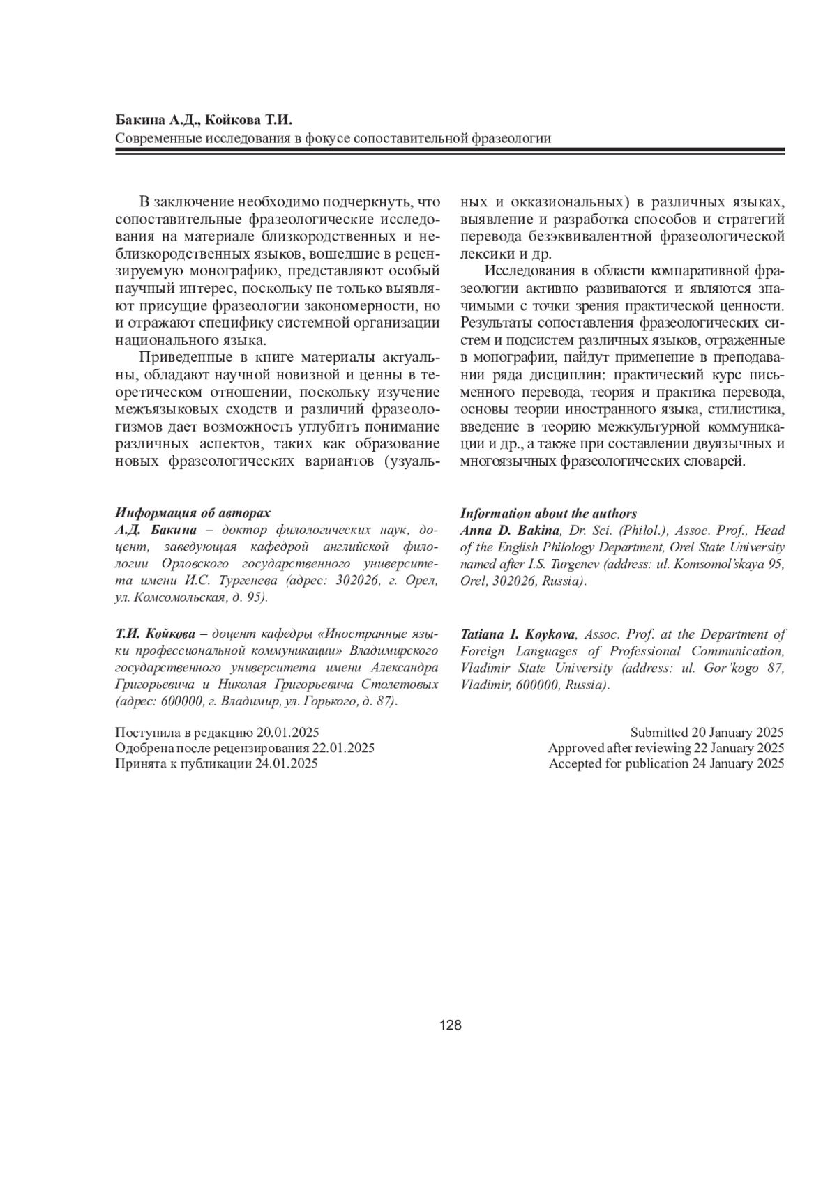 Рецензируемое монографическое издание представляет собой уникальное собрание новейших научных исследований коллектива авторов – видных ученых в области фразеологии, а именно фразеологической компаративистики. В монографии дается объективная оценка современного состояния науки о воспроизводимых устойчивых переосмысленных сочетаниях слов в сравнительном аспекте с позиции когнитивно-дискурсивной и коммуникативно-прагматической парадигм научного лингвистического знания.