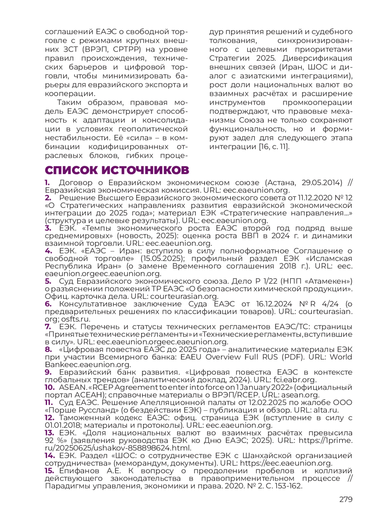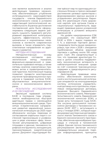 Статья: ЕВРАЗИЙСКАЯ ИНТЕГРАЦИЯ: ПРАВОВЫЕ МЕХАНИЗМЫ УГЛУБЛЕНИЯ СОТРУДНИЧЕСТВА В РАМКАХ ЕАЭС В УСЛОВИЯХ ГЕОПОЛИТИЧЕСКОЙ НЕСТАБИЛЬНОСТИ (2025)
