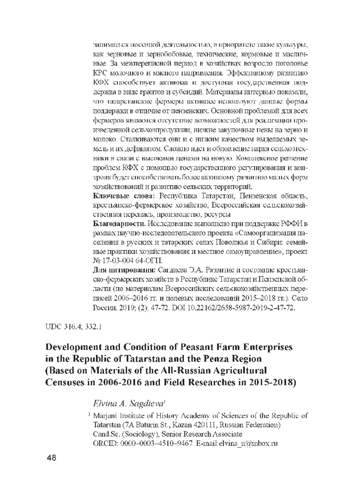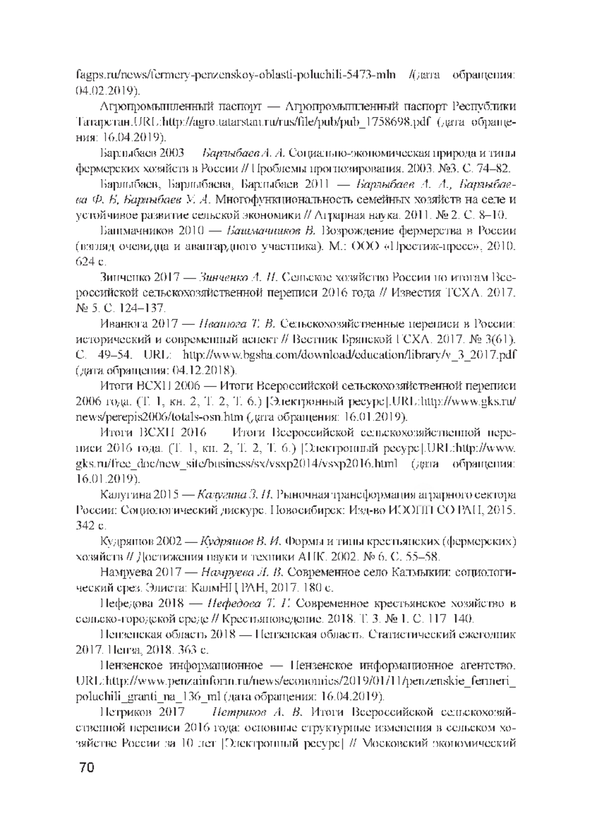 13. Нефедова Т. Г. Современное крестьянское хозяйство в сельско-городской среде // Крестьяноведение. 2018. Т. 3. № 1. С. 117-140.