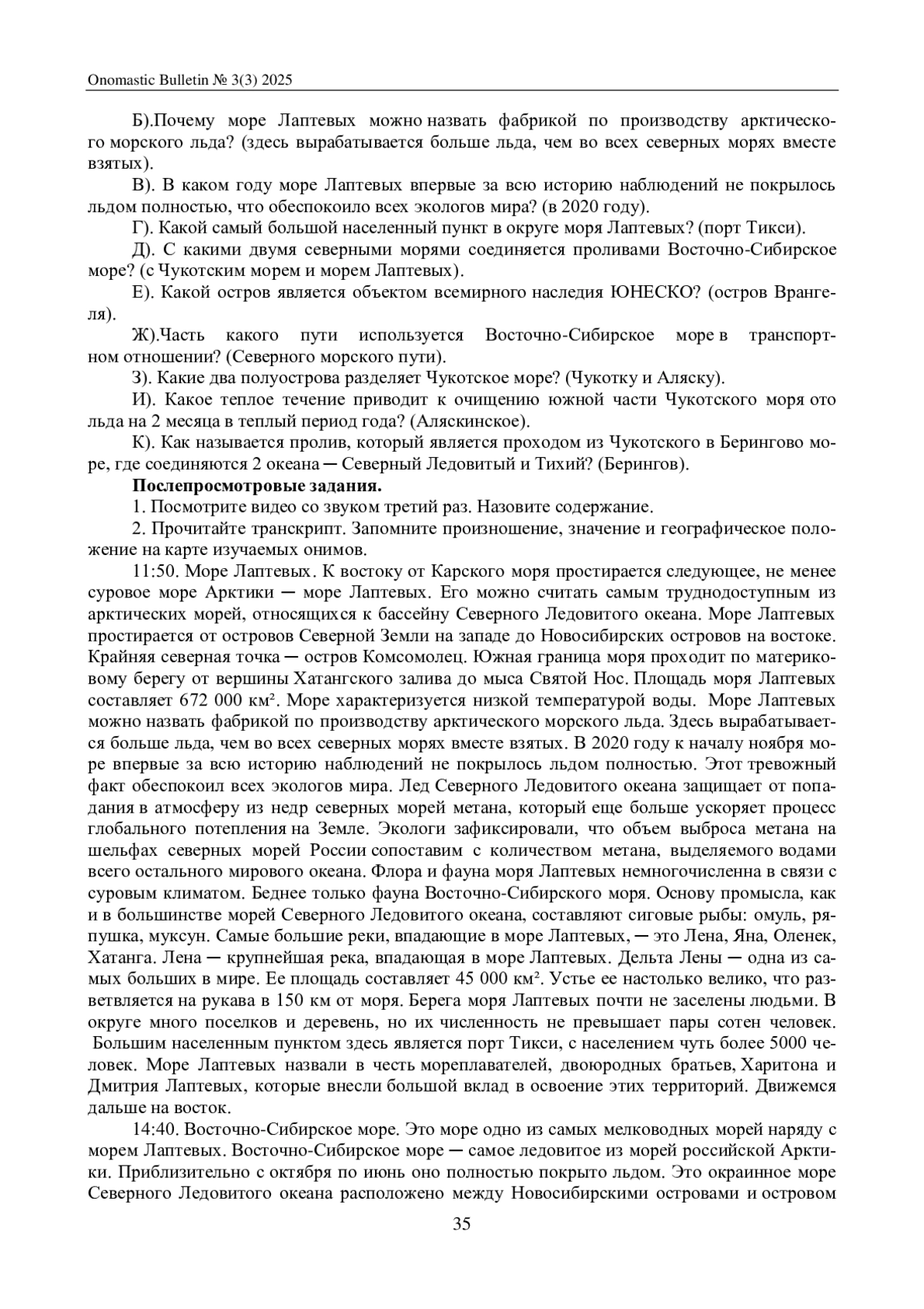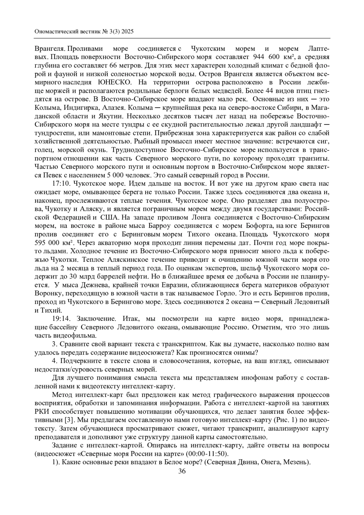 Статья: ОНИМИЧЕСКАЯ РЕГИОНАЛЬНАЯ ТЕРМИНОЛОГИЯ В ПРАКТИКО-ОРИЕНТИРОВАННОМ ОБУЧЕНИИ ИНОФОНОВ (НА ПРИМЕРЕ РАБОТЫ С ВИДЕОСЮЖЕТОМ «СЕВЕРНЫЕ МОРЯ РОССИИ НА КАРТЕ») (2025)