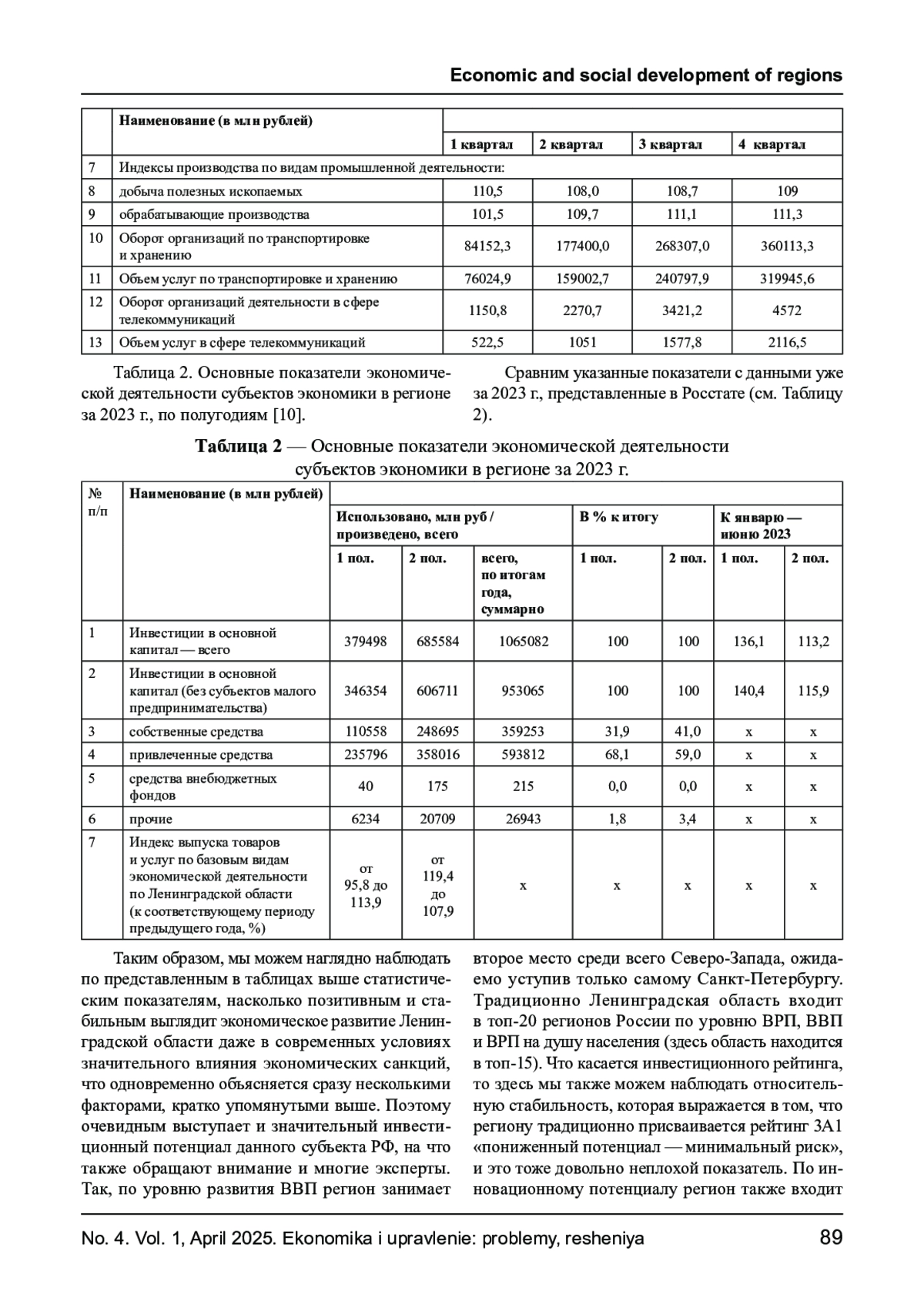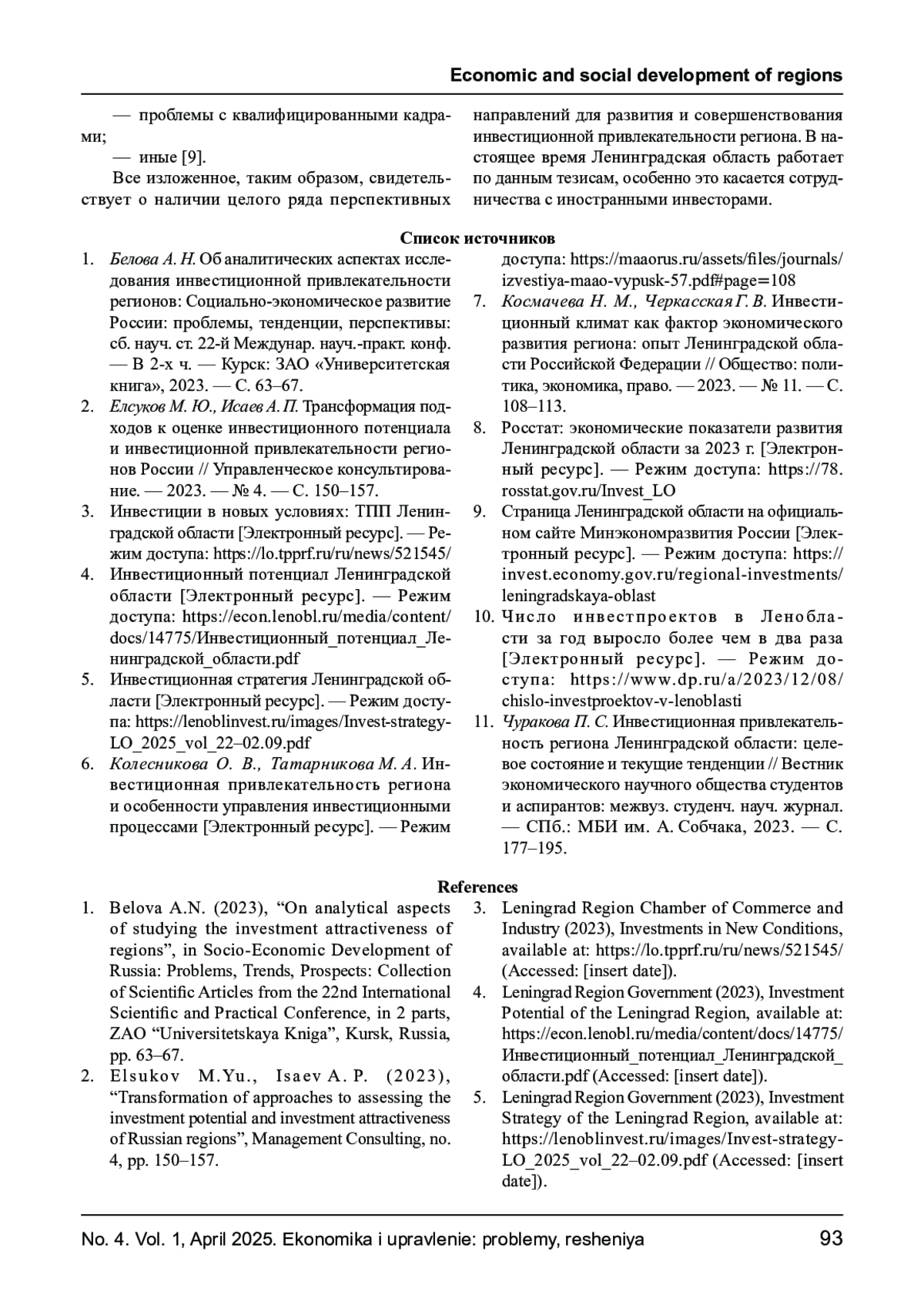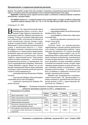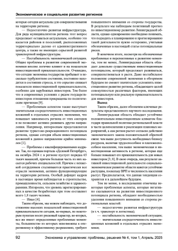 БЕРСАНОВ А. И. ИНВЕСТИЦИОННАЯ ПРИВЛЕКАТЕЛЬНОСТЬ ЛЕНИНГРАДСКОЙ ОБЛАСТИ В СОВРЕМЕННЫХ УСЛОВИЯХ // ЭКОНОМИКА И УПРАВЛЕНИЕ: ПРОБЛЕМЫ, РЕШЕНИЯ. 2025. ТОМ 1 № 4