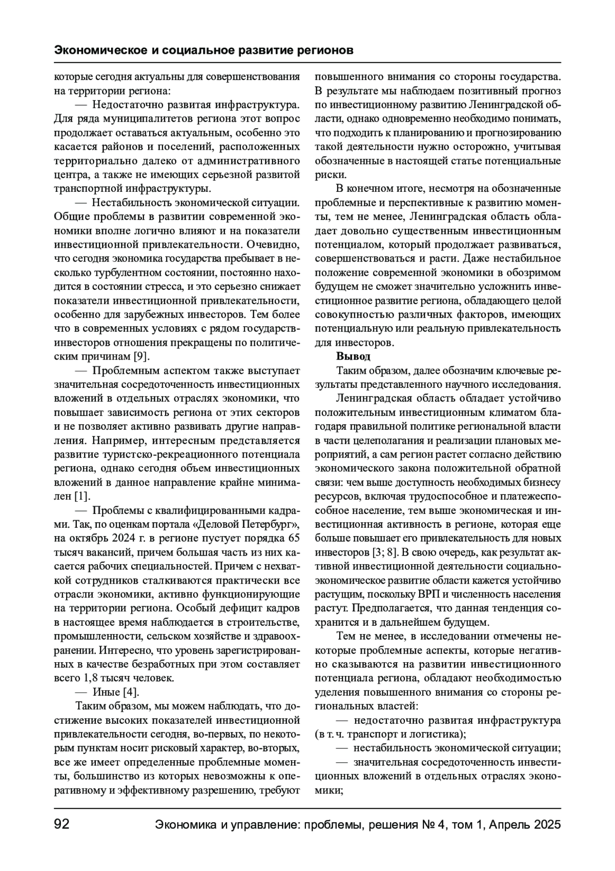 Статья: ИНВЕСТИЦИОННАЯ ПРИВЛЕКАТЕЛЬНОСТЬ ЛЕНИНГРАДСКОЙ ОБЛАСТИ В СОВРЕМЕННЫХ УСЛОВИЯХ (2025)