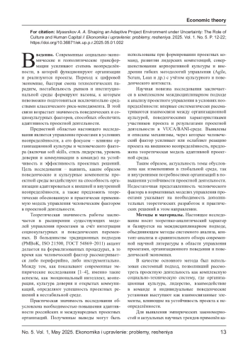 Современные социально-экономические и геополитические трансформации усиливают степень неопределённости, в которой функционируют организации и реализуются проекты.
