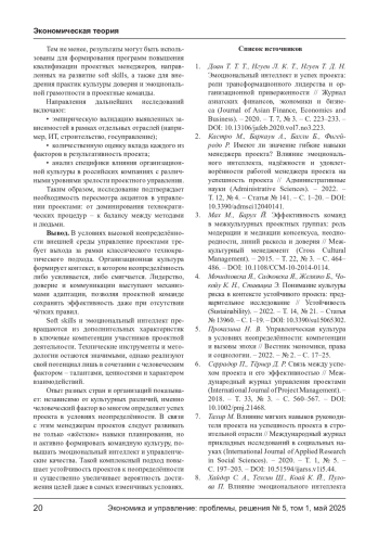 7. Тахир М. Влияние мягких навыков руководителя проекта на успешность проекта в строительной отрасли // Международный журнал прикладных исследований в социальных науках (International Journal of Applied Research in Social Sciences). - 2020. - Т. 1, № 5. - С. 197-203. -. DOI: 10.51594/ijarss.v1i5.44