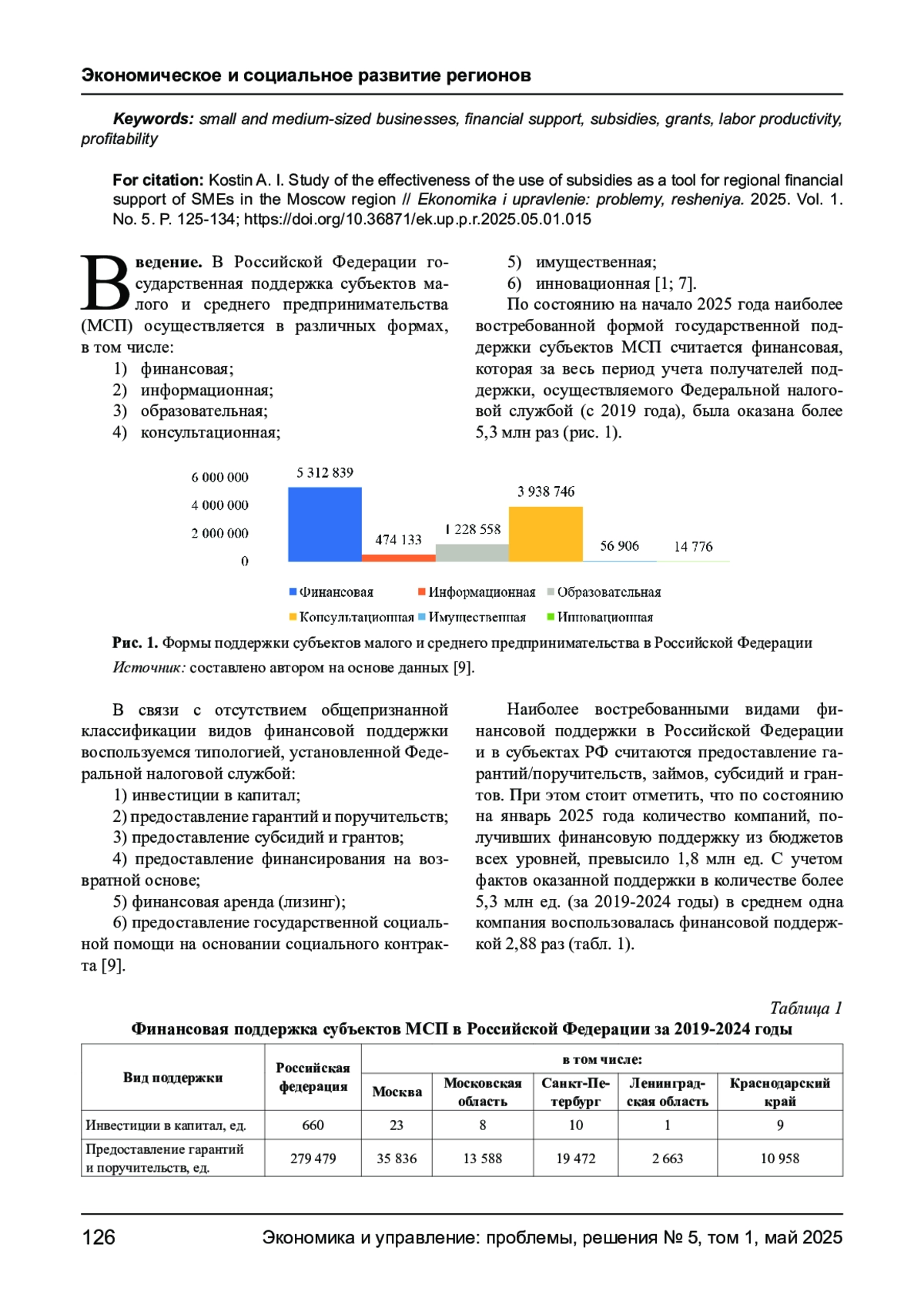 В Российской Федерации государственная поддержка субъектов малого и среднего предпринимательства (МСП) осуществляется в различных формах, в том числе: 1) финансовая; 2) информационная; 3) образовательная; 4) консультационная; 5) имущественная; 6) инновационная [1; 7].