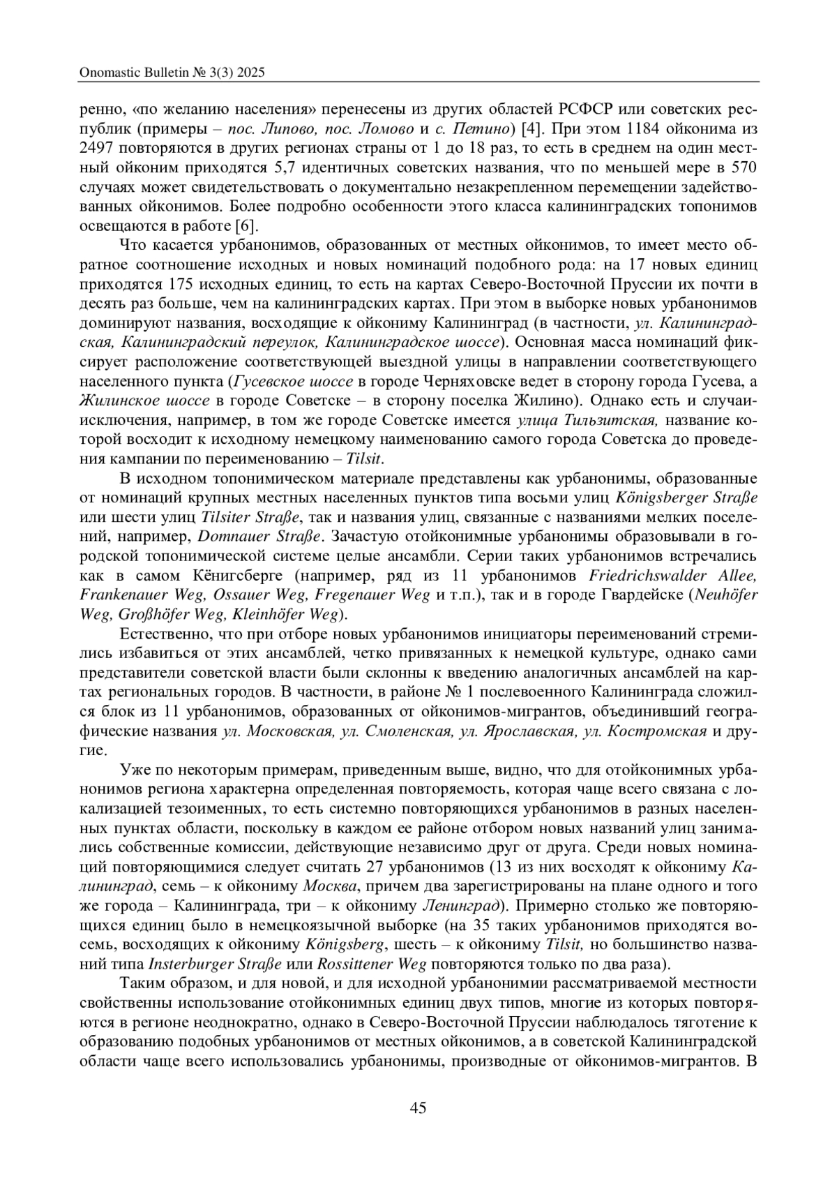 6. Петешова О.В. Роль дистантной топонимической метонимии в Калининградской области // Lingua Academica: Актуальные проблемы лингвистики и лингводидактики. Ульяновск: Ульяновский государственный университет, 2024. С. 124-129.