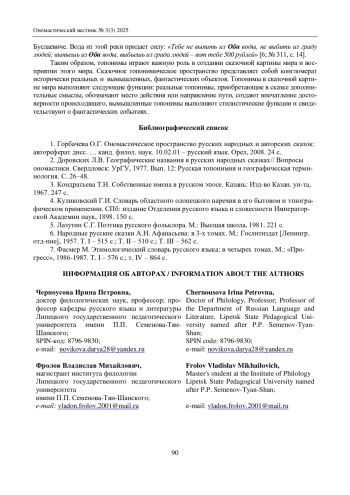 2. Доровских Л.В. Географические названия в русских народных сказках// Вопросы ономастики. Свердловск: УрГУ, 1977. Вып. 12: Русская топонимия и географическая терминология. С. 26-48.