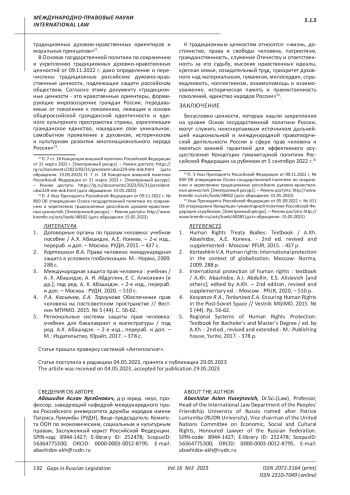 International protection of human rights: textbook / A.Kh. Abashidze, A.I. Abdullin, E.S. Alisievich [and others]; edited by A.Kh. - 2nd edition, revised and supplementary ed. - Moscow: PFUR, 2020. - 510 p.