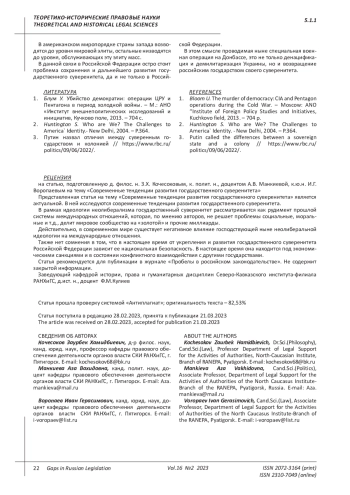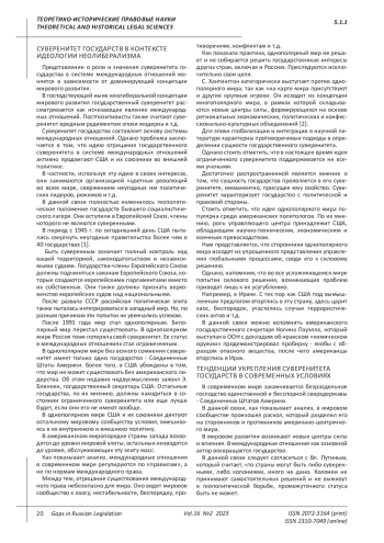 Статья: СОВРЕМЕННЫЕ ТЕНДЕНЦИИ РАЗВИТИЯ ГОСУДАРСТВЕННОГО СУВЕРЕНИТЕТА (2023)