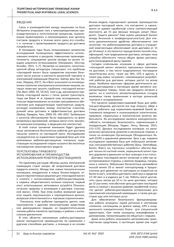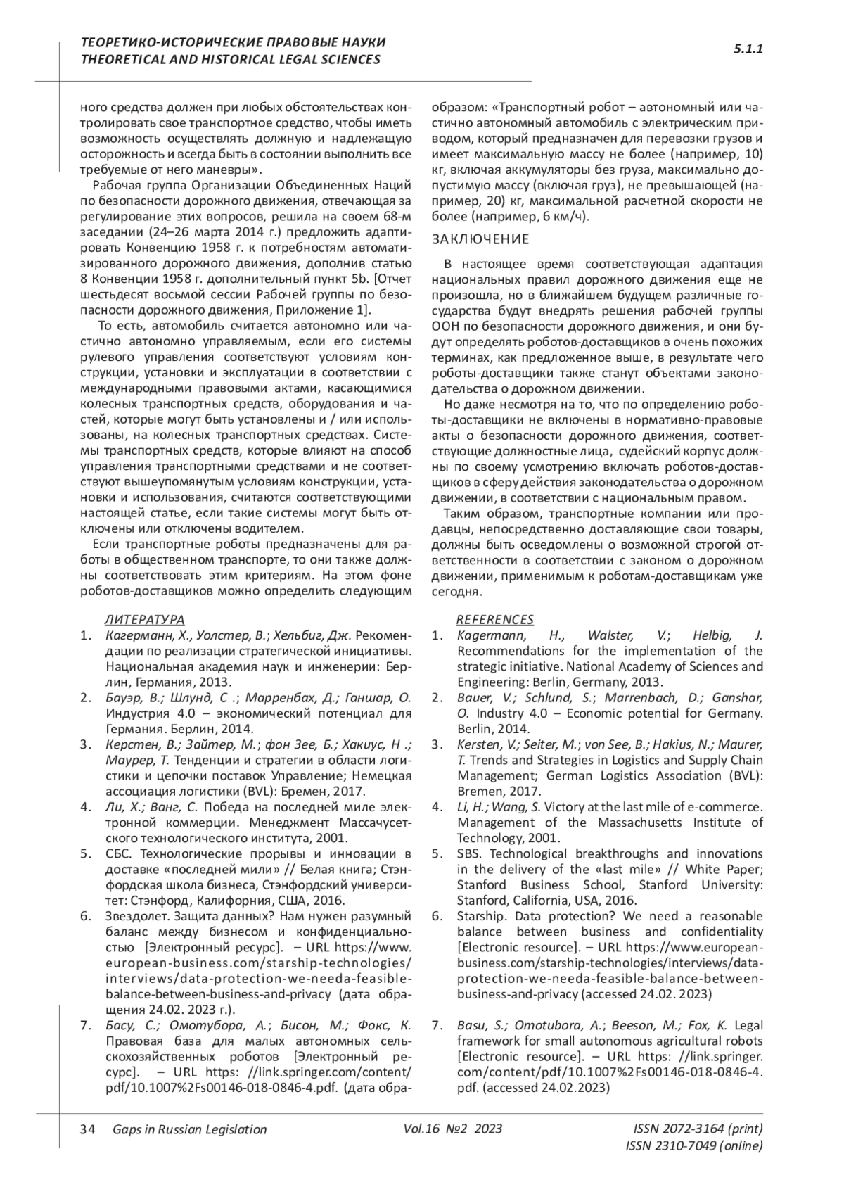 Статья: ПЕРСПЕКТИВЫ ПРАВОВОГО РЕГУЛИРОВАНИЯ ИСПОЛЬЗОВАНИЯ РОБОТОВ-ДОСТАВЩИКОВ (2023)