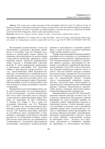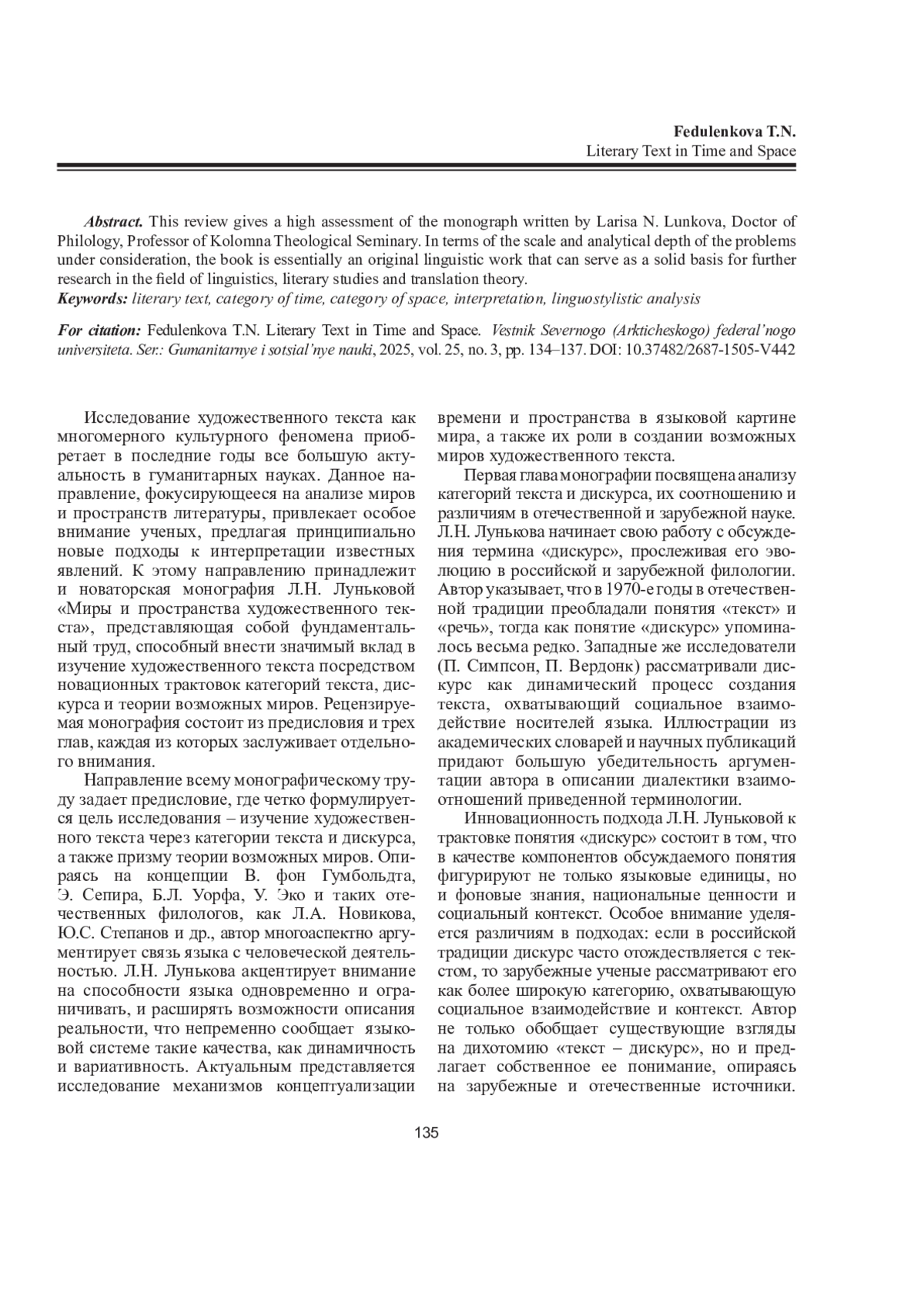 ФЕДУЛЕНКОВА Т. Н. ХУДОЖЕСТВЕННЫЙ ТЕКСТ ВО ВРЕМЕНИ И ПРОСТРАНСТВЕ // ВЕСТНИК СЕВЕРНОГО (АРКТИЧЕСКОГО) ФЕДЕРАЛЬНОГО УНИВЕРСИТЕТА. СЕРИЯ: ГУМАНИТАРНЫЕ И СОЦИАЛЬНЫЕ НАУКИ. 2025. Т. 25 № 3