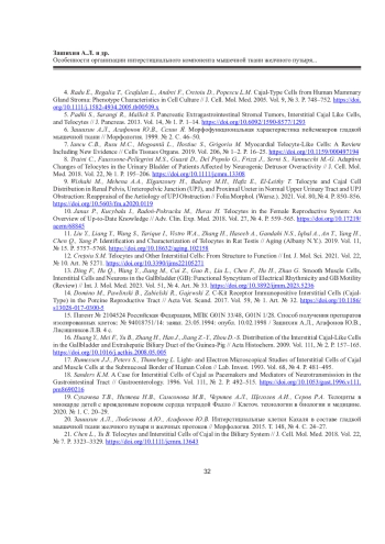12. Crețoiu S.M. Telocytes and Other Interstitial Cells: From Structure to Function // Int. J. Mol. Sci. 2021. Vol. 22, No 10. Art. No 5271. DOI: 10.3390/ijms22105271 EDN: BCYINJ