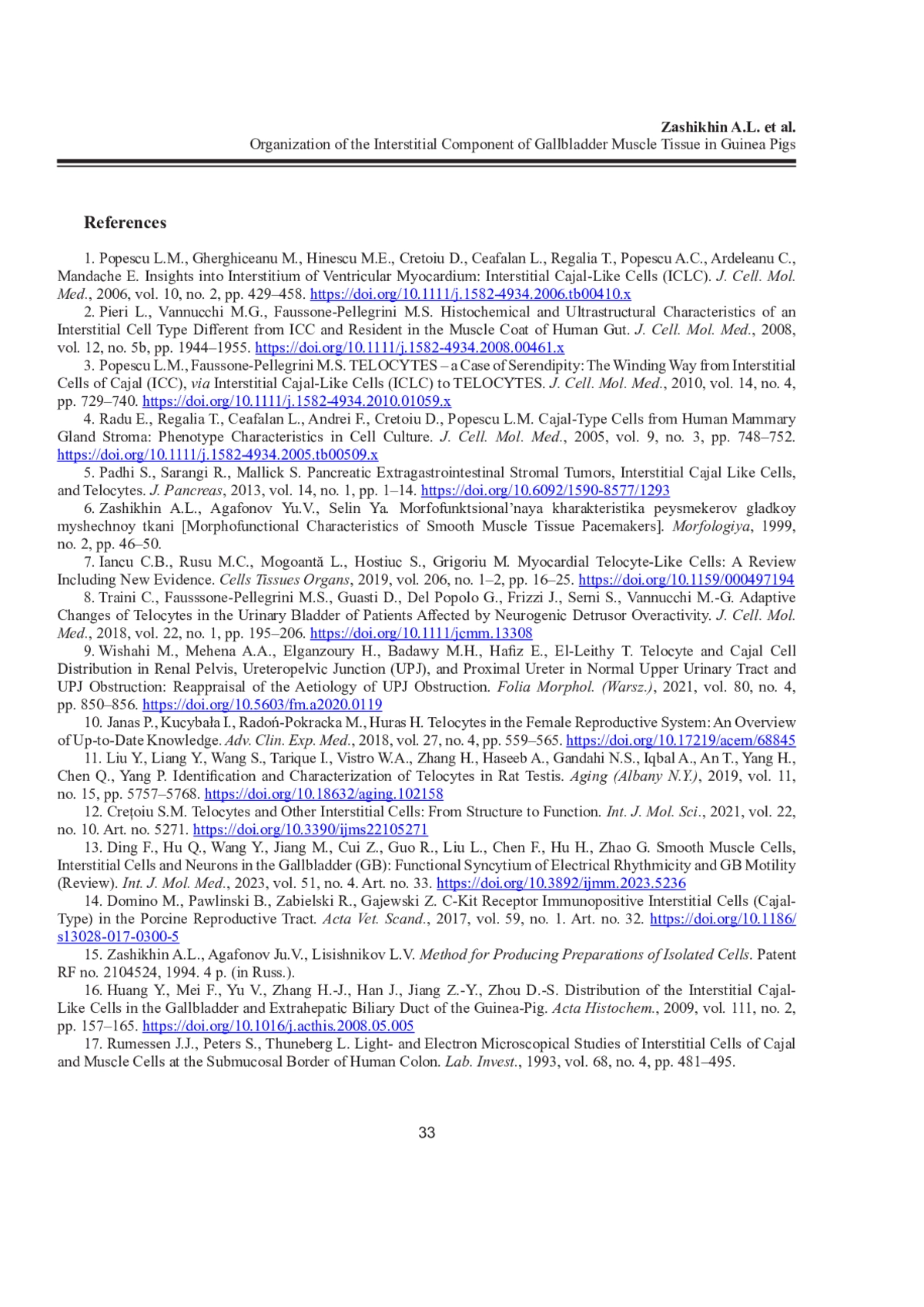 3. Popescu L.M., Faussone-Pellegrini M.S. TELOCYTES - a Case of Serendipity: The Winding Way from Interstitial Cells of Cajal (ICC), via Interstitial Cajal-Like Cells (ICLC) to Telocytes // J. Cell. Mol. Med. 2010. Vol. 14, No 4. P. 729-740. DOI: 10.1111/j.1582-4934.2010.01059.x EDN: NYXLNF