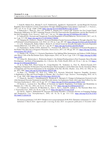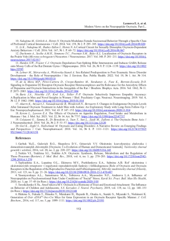10. Nakajima M., Görlich A., Heintz N. Oxytocin Modulates Female Sociosexual Behavior Through a Specific Class of Prefrontal Cortical Interneurons // Cell. 2014. Vol. 159, No 2. Р. 295-305. DOI: 10.1016/j.cell.2014.09.020