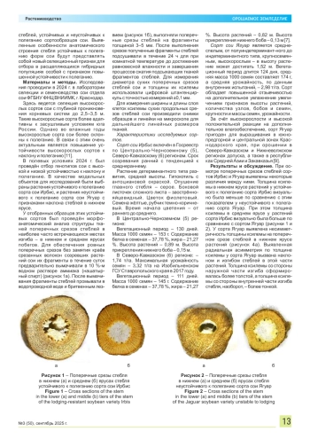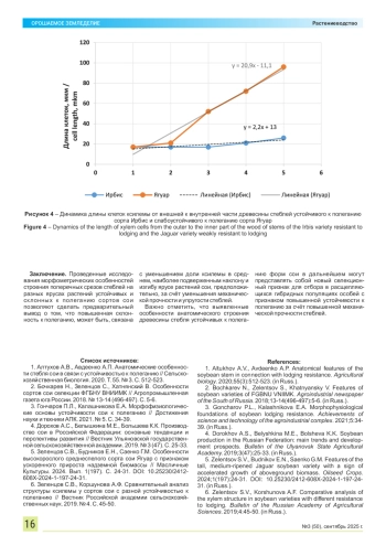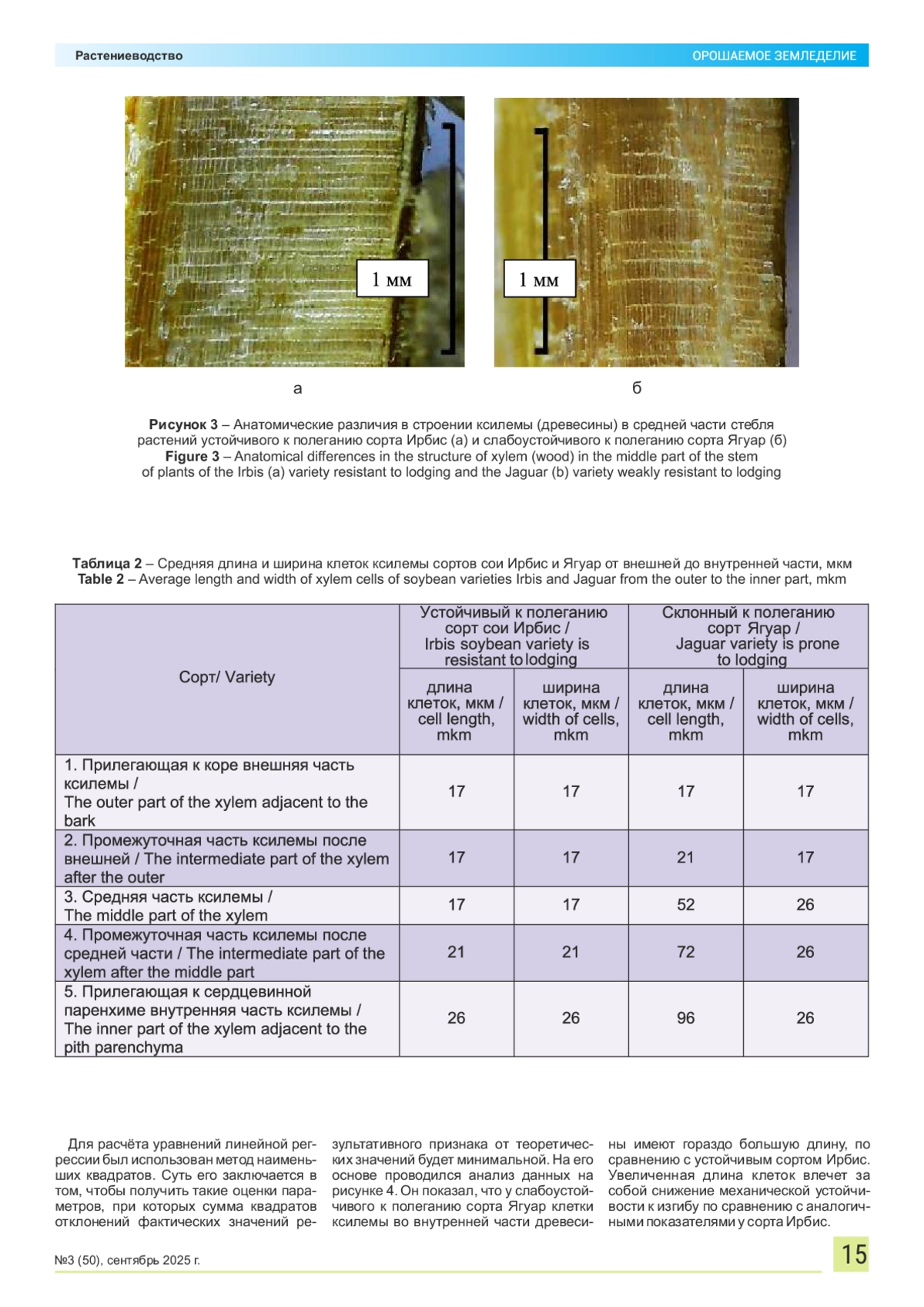 Статья: МОРФО-АНАТОМИЧЕСКИЕ ОСОБЕННОСТИ СТРОЕНИЯ И ЛИНЕЙНЫХ РАЗМЕРОВ КСИЛЕМЫ СТЕБЛЕЙ СОРТОВ СОИ С РАЗНОЙ УСТОЙЧИВОСТЬЮ К ПОЛЕГАНИЮ (2025)