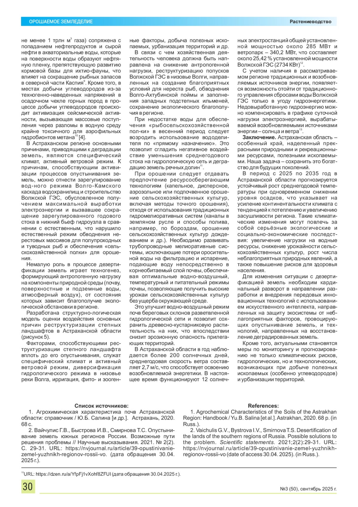 Статья: ОСОБЕННОСТИ ОПУСТЫНИВАНИЯ ЗЕМЕЛЬ В АСТРАХАНСКОЙ ОБЛАСТИ (2025)