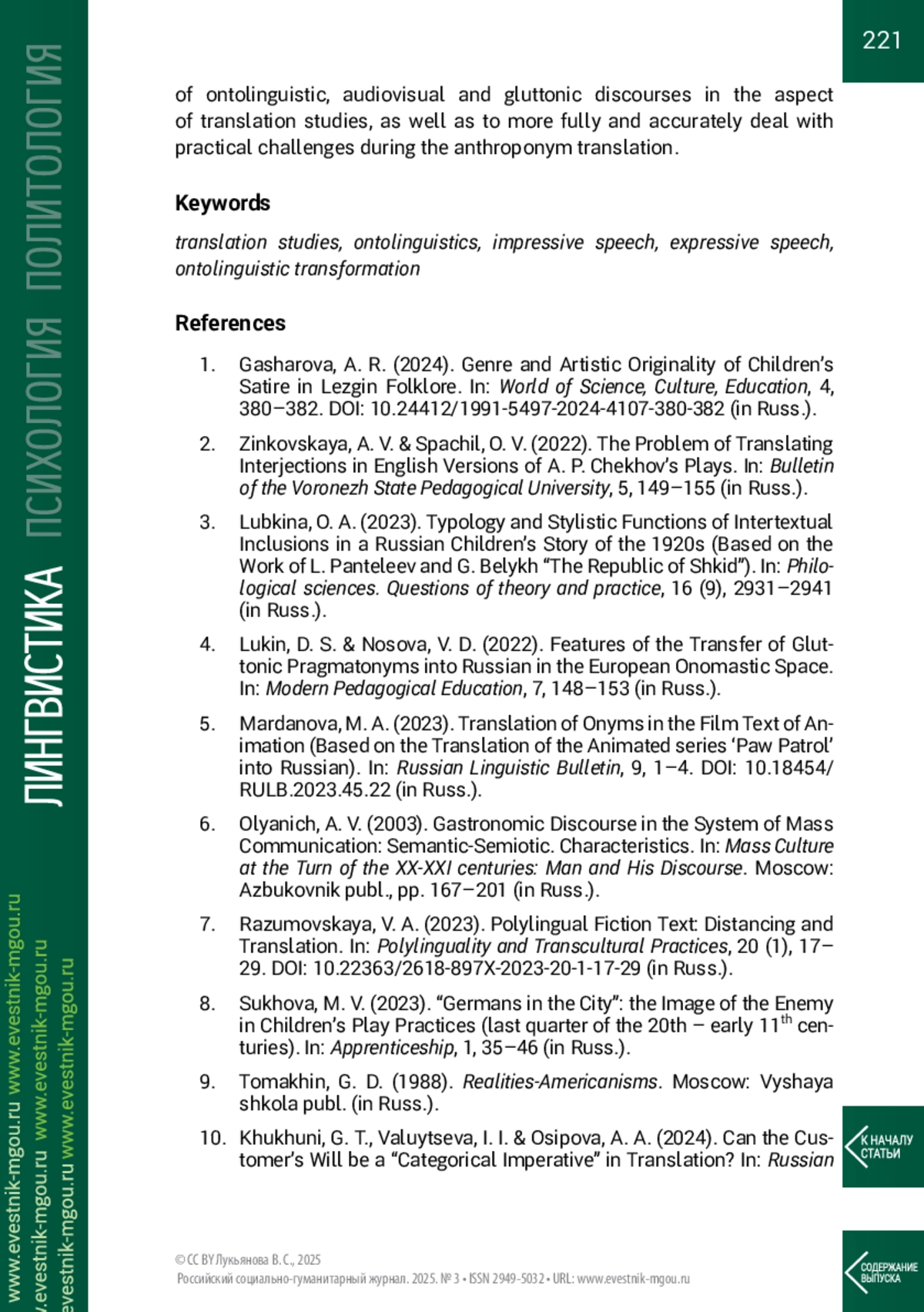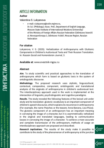 Статья: ВЕРБАЛИЗАЦИЯ АНТРОПОНИМА С ГЛЮТТОНИЧЕСКИМ КОМПОНЕНТОМ В ДЕТСКОМ АУДИОВИЗУАЛЬНОМ ТЕКСТЕ И ЕГО ПЕРЕВОДЕ (2025)