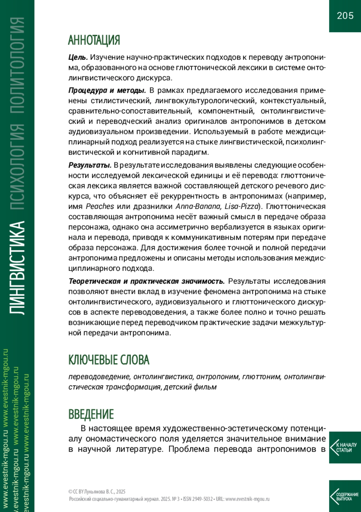 ЛУКЬЯНОВА В. С. ВЕРБАЛИЗАЦИЯ АНТРОПОНИМА С ГЛЮТТОНИЧЕСКИМ КОМПОНЕНТОМ В ДЕТСКОМ АУДИОВИЗУАЛЬНОМ ТЕКСТЕ И ЕГО ПЕРЕВОДЕ // РОССИЙСКИЙ СОЦИАЛЬНО-ГУМАНИТАРНЫЙ ЖУРНАЛ. 2025. №3