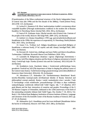 22. Dudoignon S. Devout Societies Vs. Impious States: Transmitting Islamic Learning in Russia, Central Asia and China, Through the Twentieth Century. Berlin: Klaus Schwarz Verlag Gmbh; 2019. 296 p.