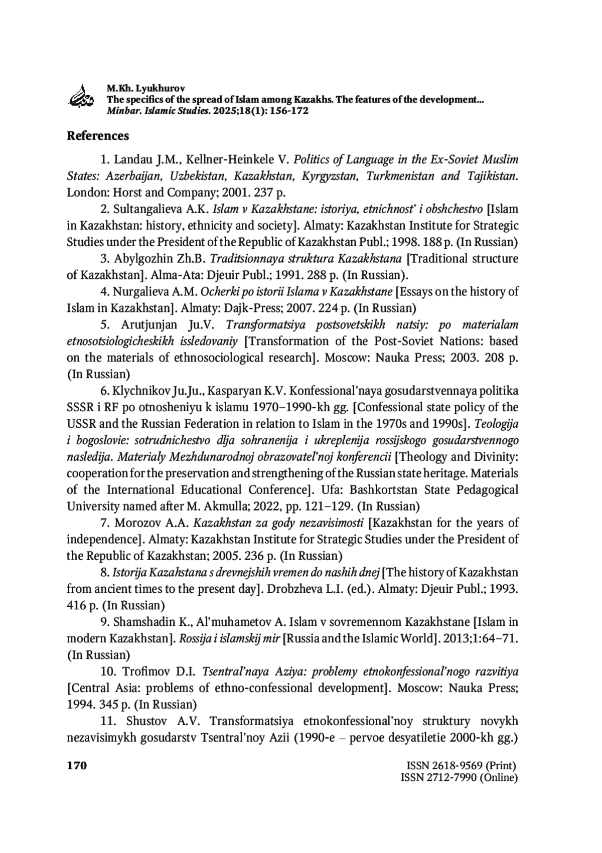 9. Шамшадин К., Альмухаметов А. Ислам в современном Казахстане. Россия и исламский мир. 2013;1:64-71.